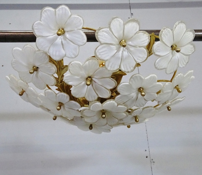 dekor av glasblommor, mässing, 5 ljuspunkter