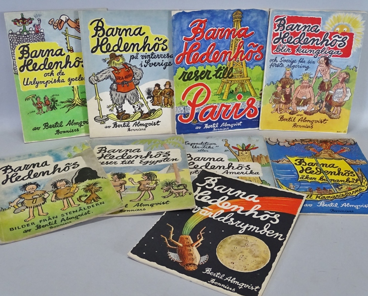 9 st. seriealbum "Barna Hedenhös" Bertil Almqvist, Albert Bonniers förlag Stockholm, 194 /50-tal