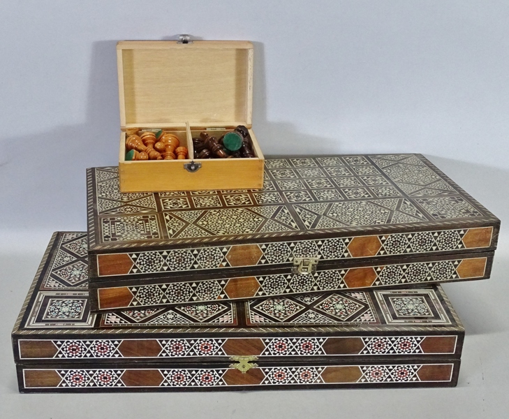 Bilder 2 st. schack-/backgammonbräden, 1900-tal
