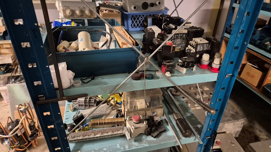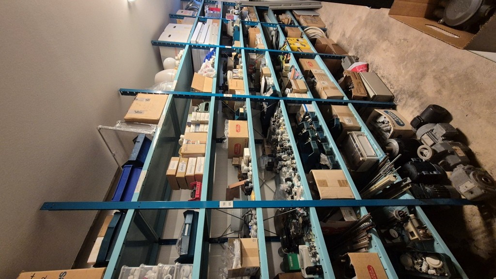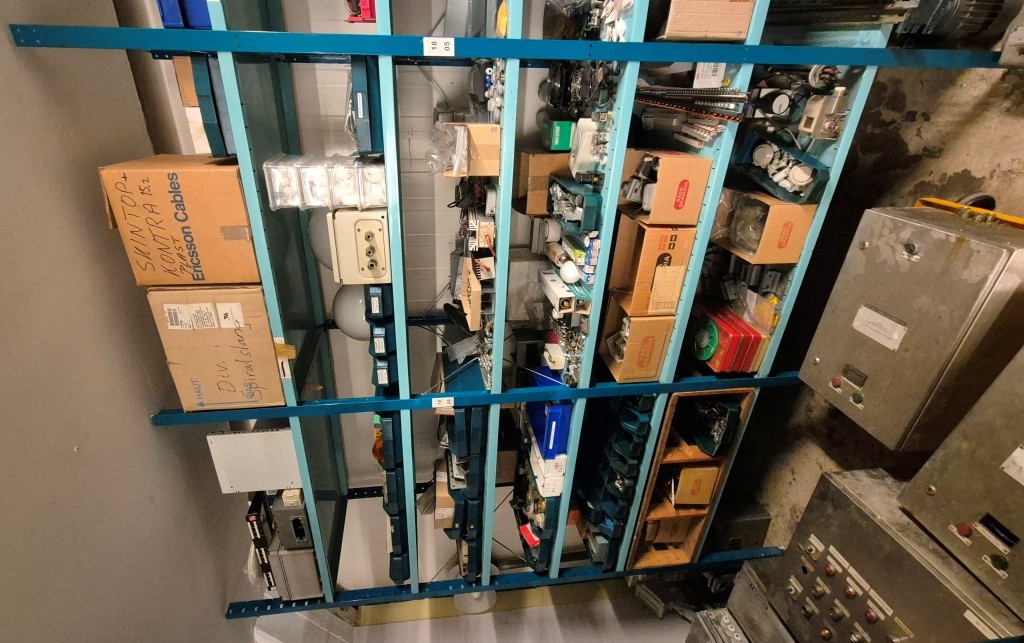 Stabil lagerhylla i plåt46st HyllplanMått: 100x60cm10st Gavlar Höjd: 250cmOBS: Innehåll i hyllan ingår ej