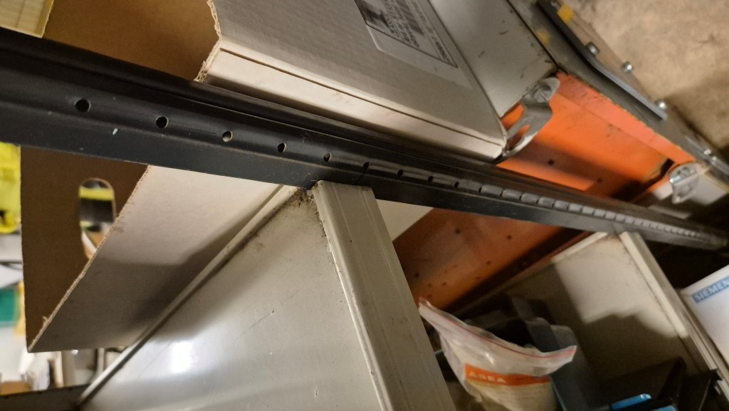 Stabil lagerhylla i plåt34st HyllplanMått: 100x40cm13st Gavlar Höjd: 200cm