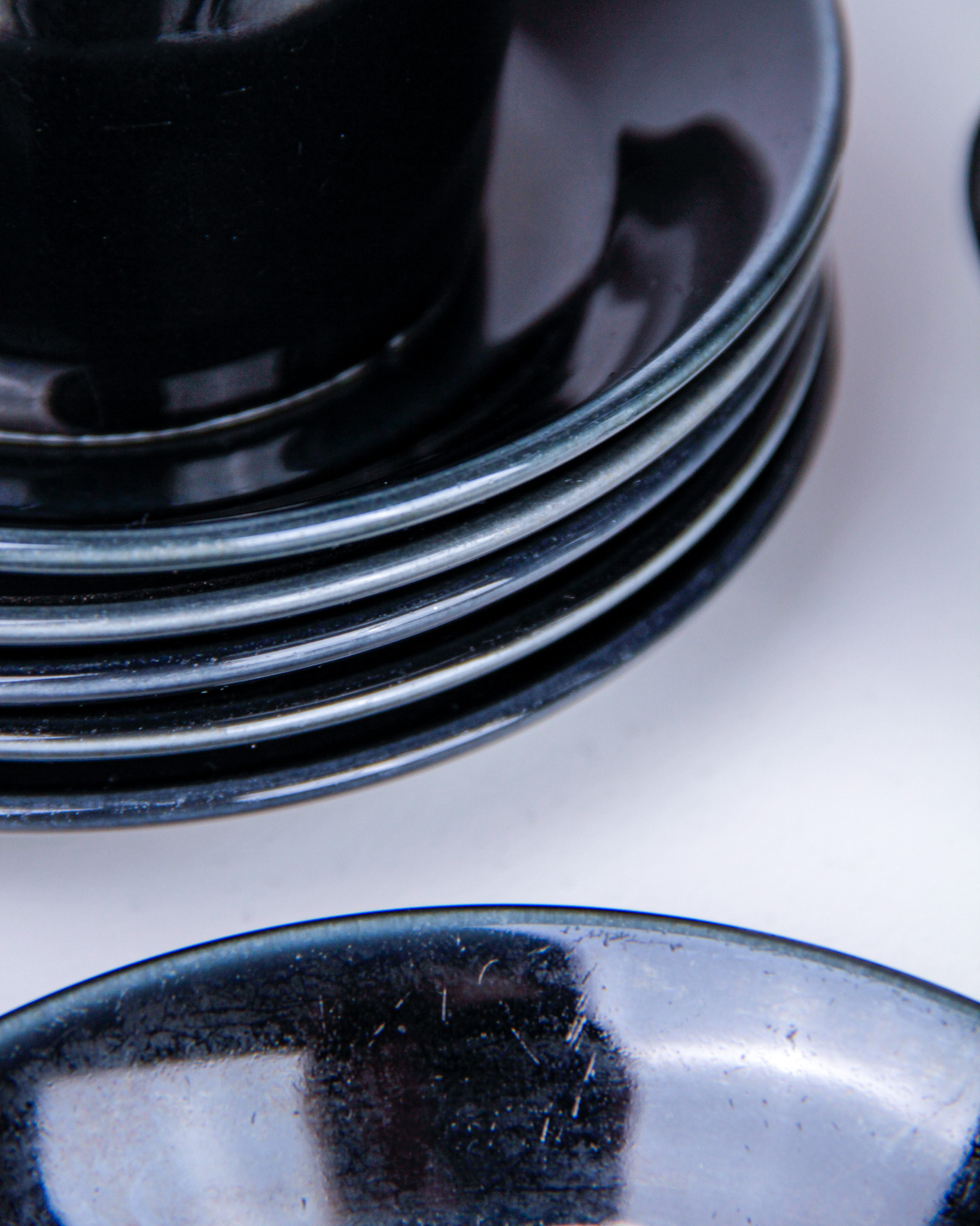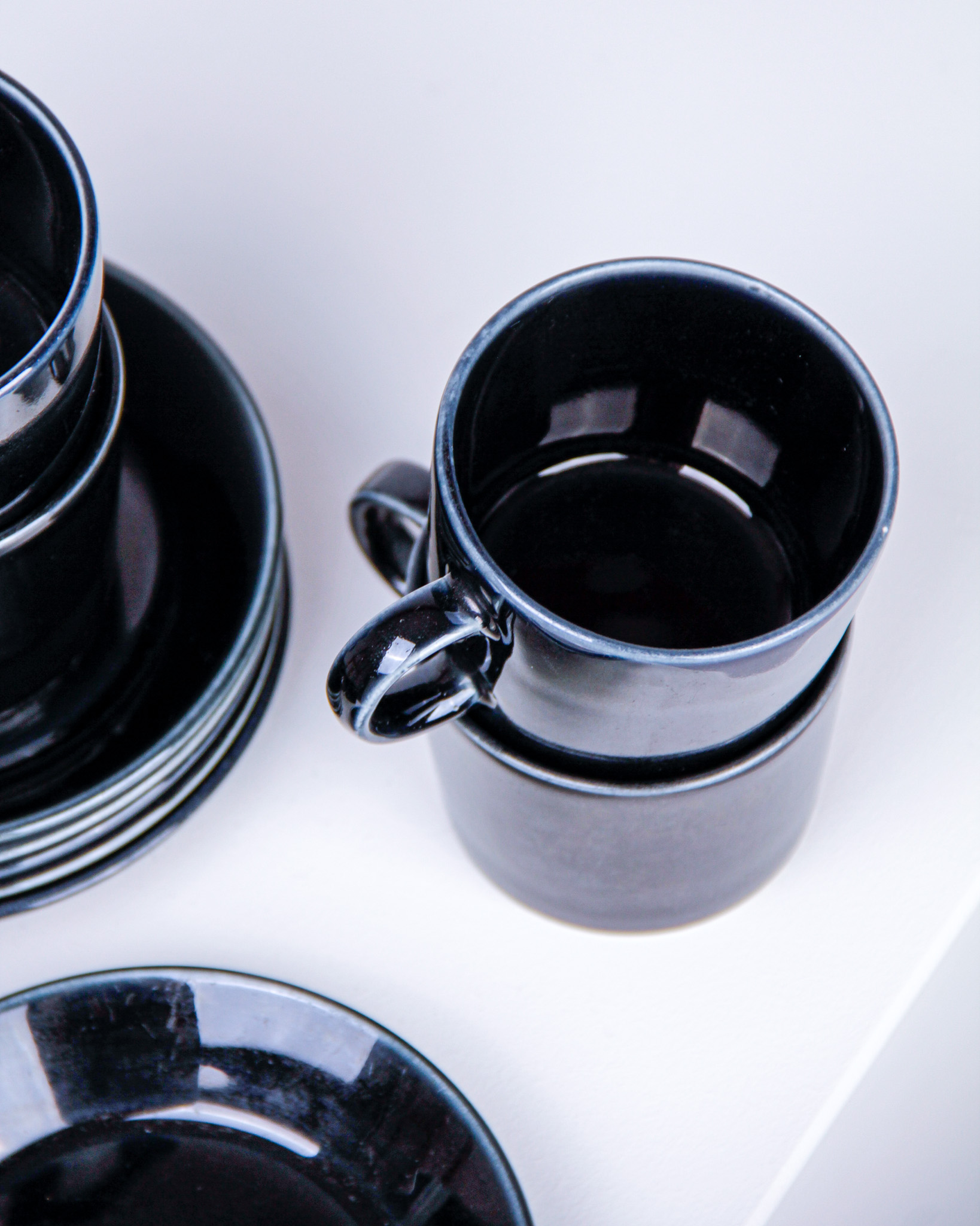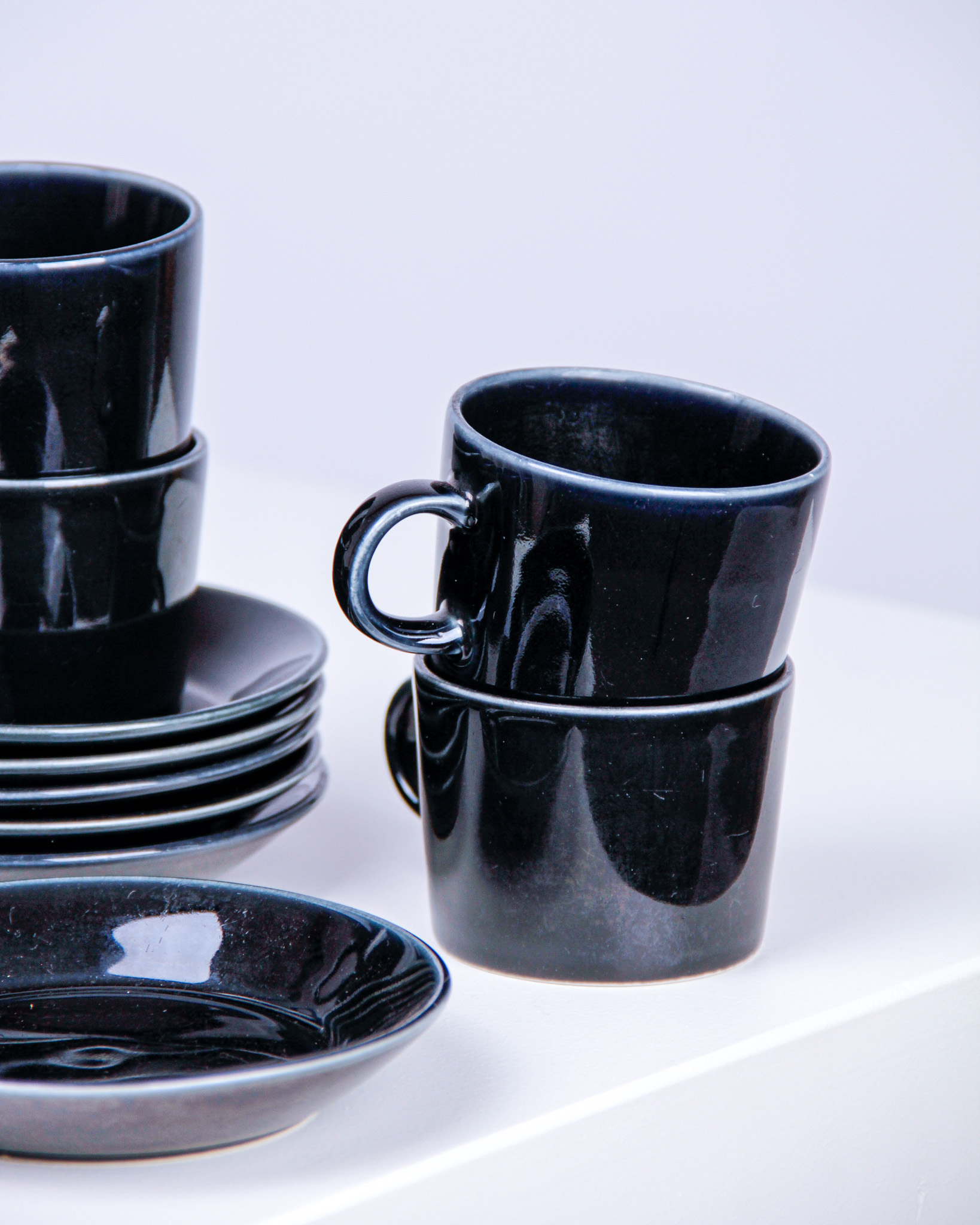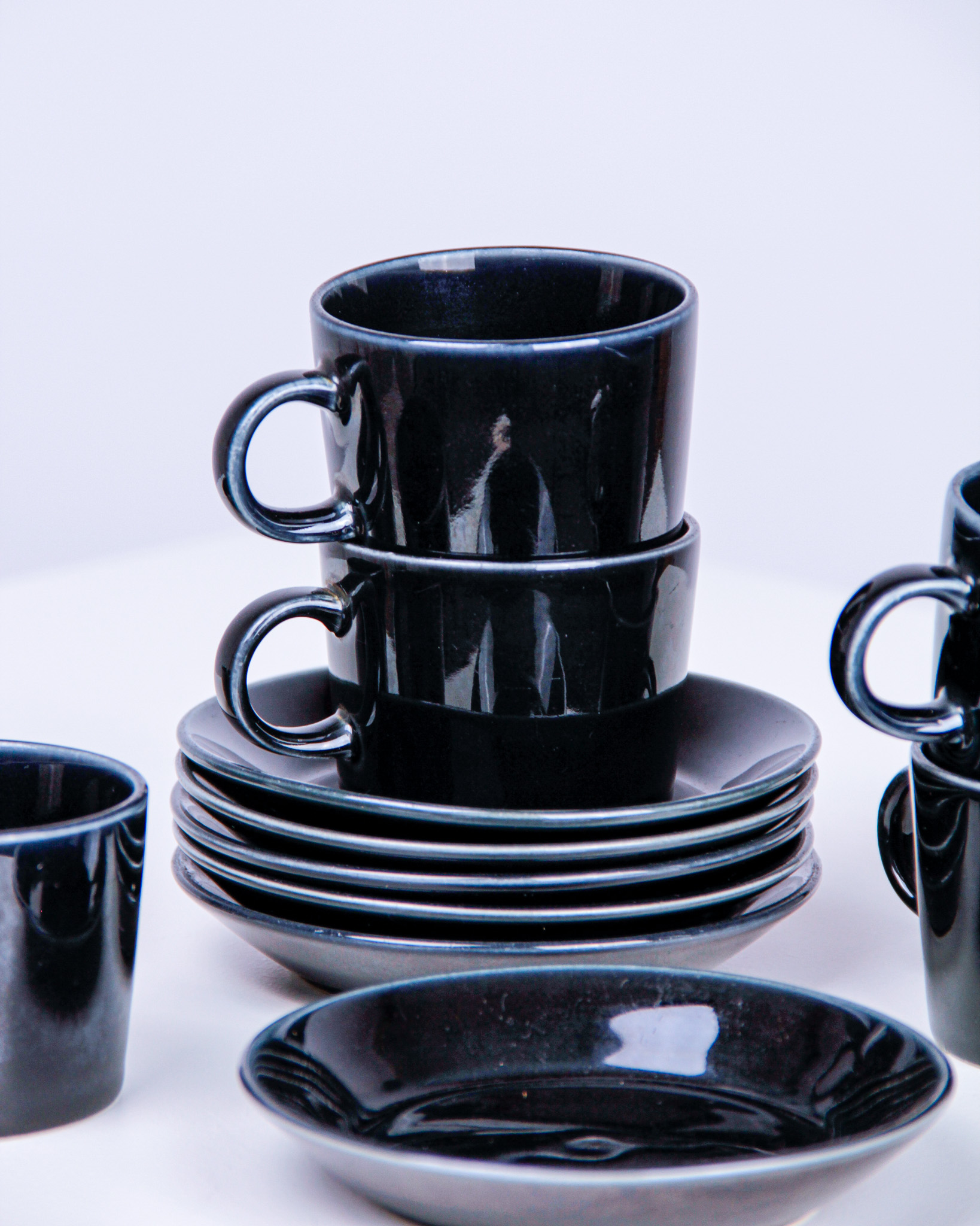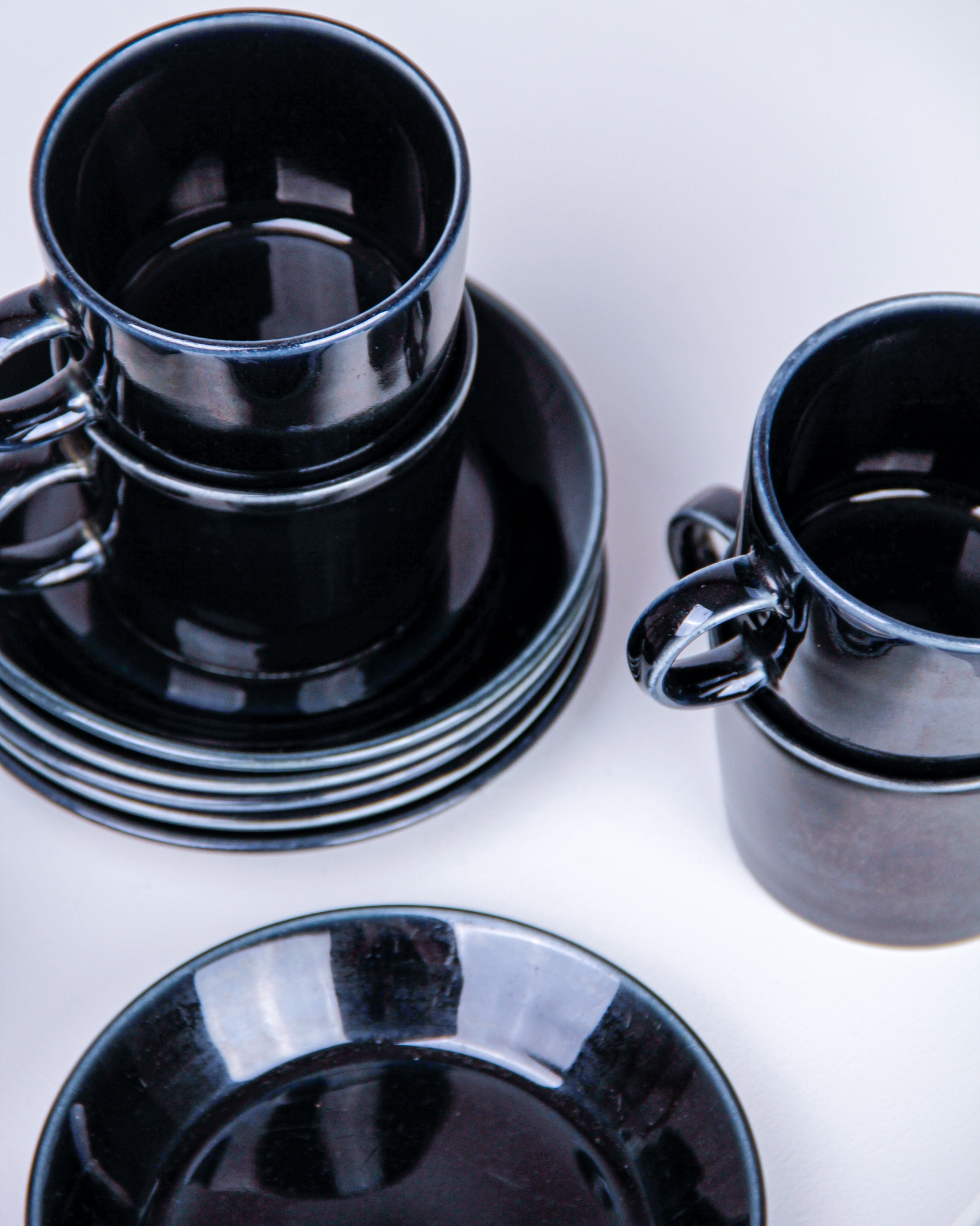 Koppar med fat, 6 st, "Teema", Kaj Franck, porslin, tillverkarmärkt Arabia