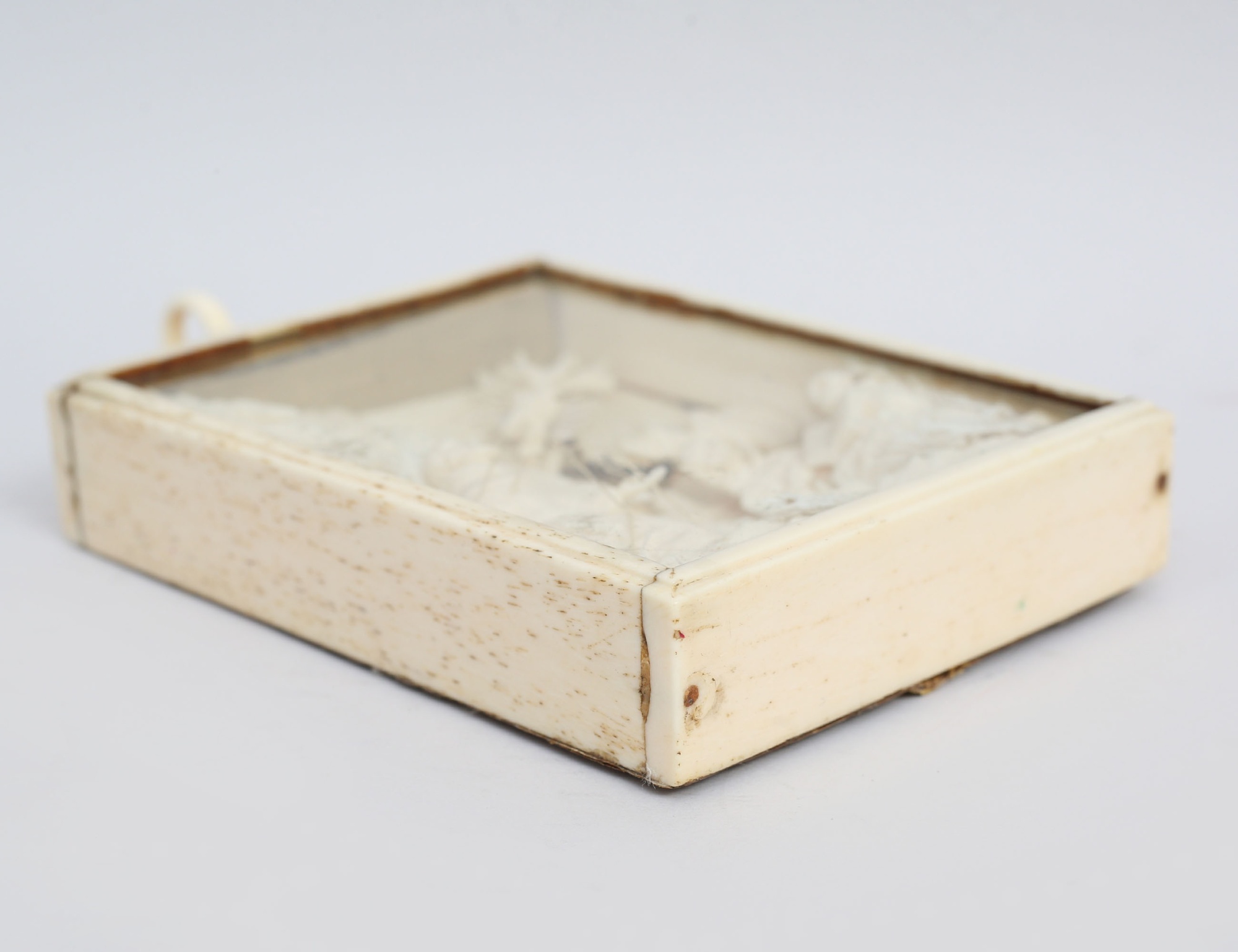 Kristi himmelsfärd, benarbete, monterad i benram med glas, 12x9, höjd 16,5