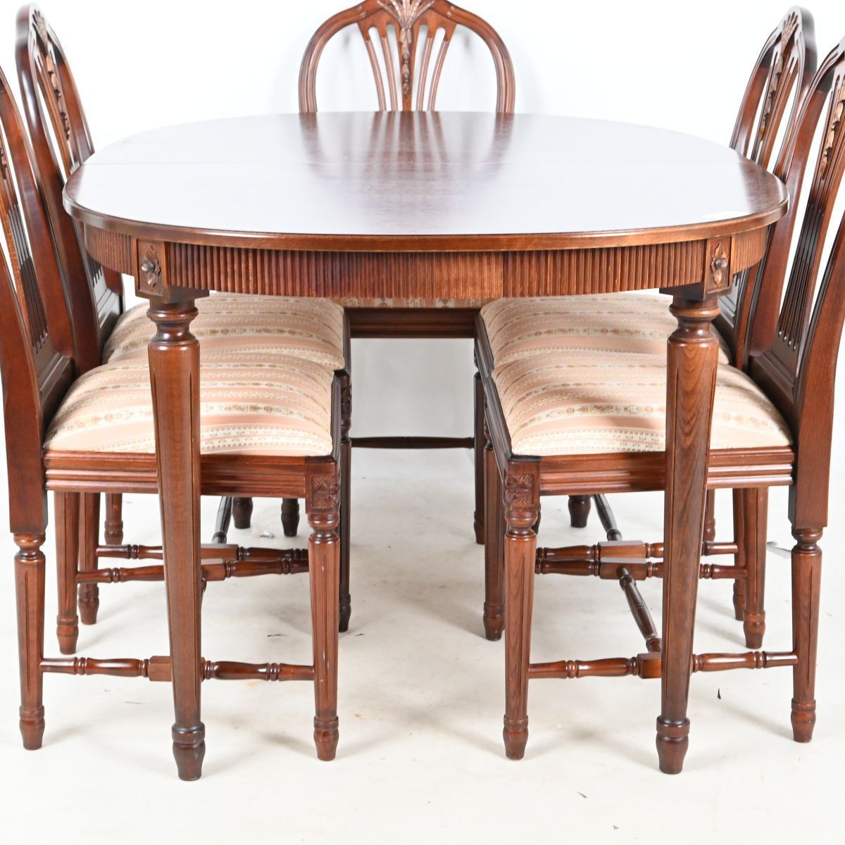 Matgrupp, 6 stolar och bord, mahogny, Gustaviansk stil