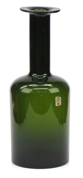 Auktioner Keramik & Porslin Brauer, Otto för Holmegaard, vas/flaska, grön glasmassa, så kallad gulvvase, design 1959, etikettsignerad