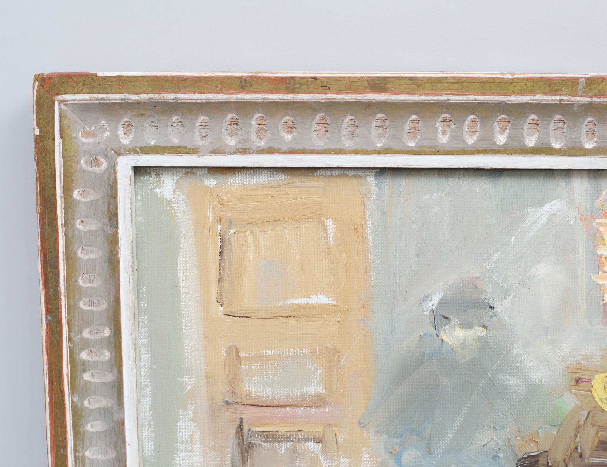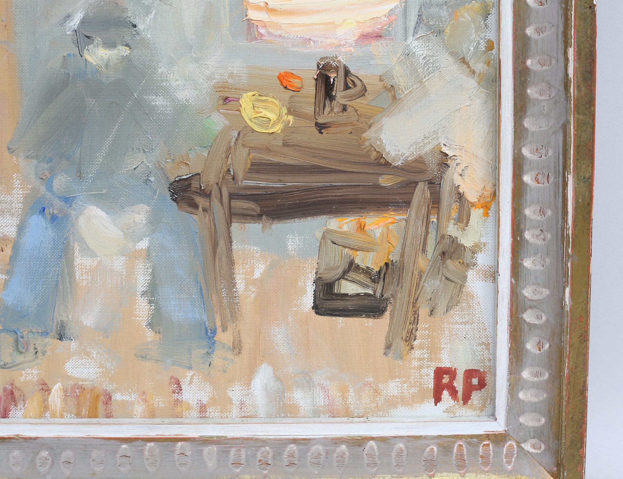 oljemålning på duk, interiör med figurer vid bord, monogramsignerad även atergo, 27x35, rammått 36x43
