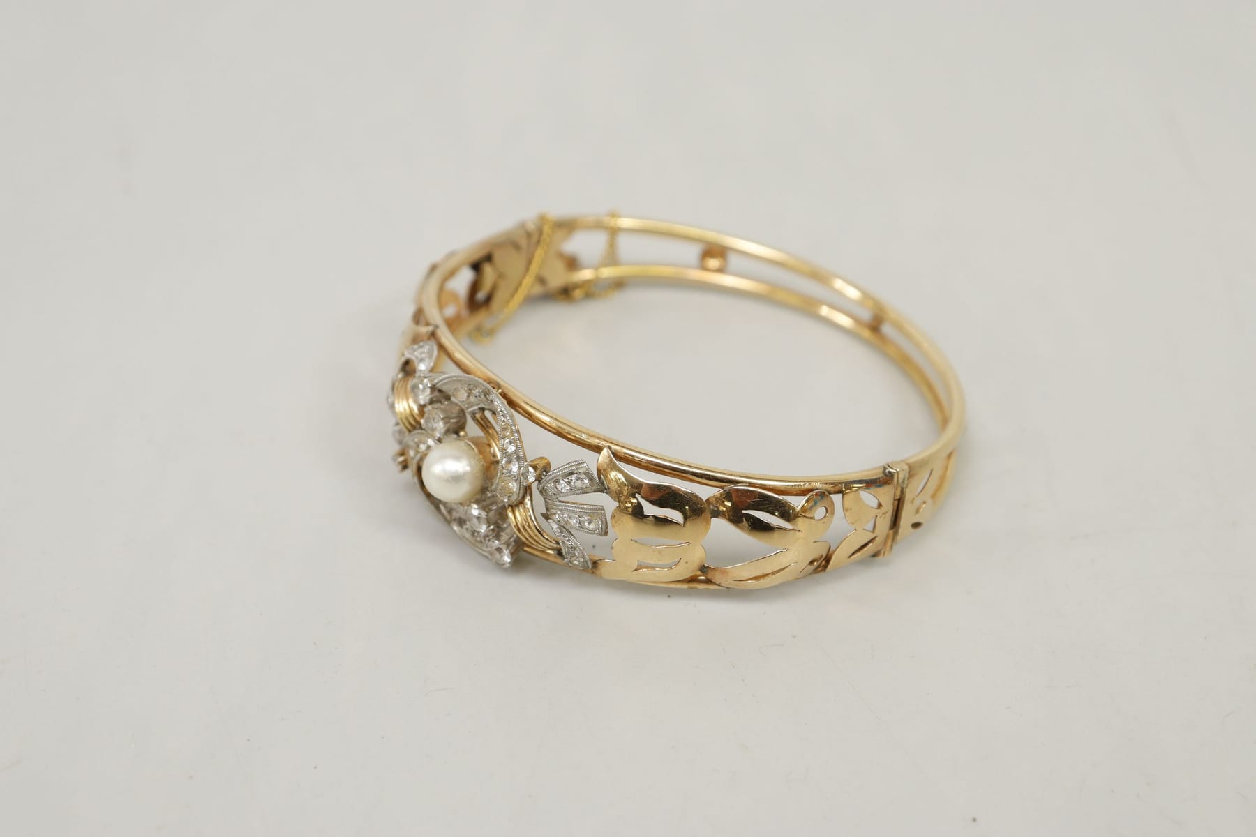 Armring, guld 14K med slipade stenar, vikt 19.3 gram