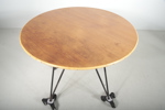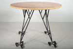 Bord med metallstomme.Skiva i teak.H= 70cmDia= 100cm