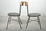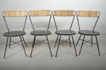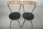 Troligtvis "Holm Populär". Oscar Ahrén för Åhlene Holm. Stolar med metallstomme. Rygg klädd i rotting & sits galonklädd. Sh= 42cmRh= 82cm