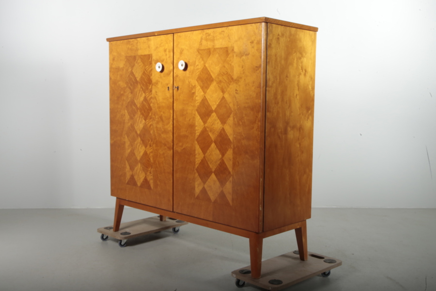 Dörrpar med bakomliggande lådor samt hyllplan. Nyckel medföljer. H= 123cmB= 126cmDjup= 45cm