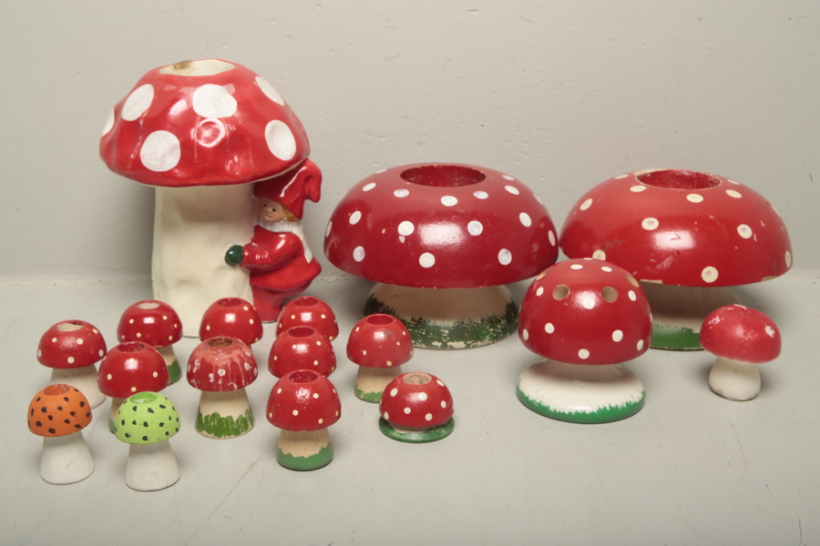 Bilder Juldekorationer- Parti ljusstakar i form av svampar