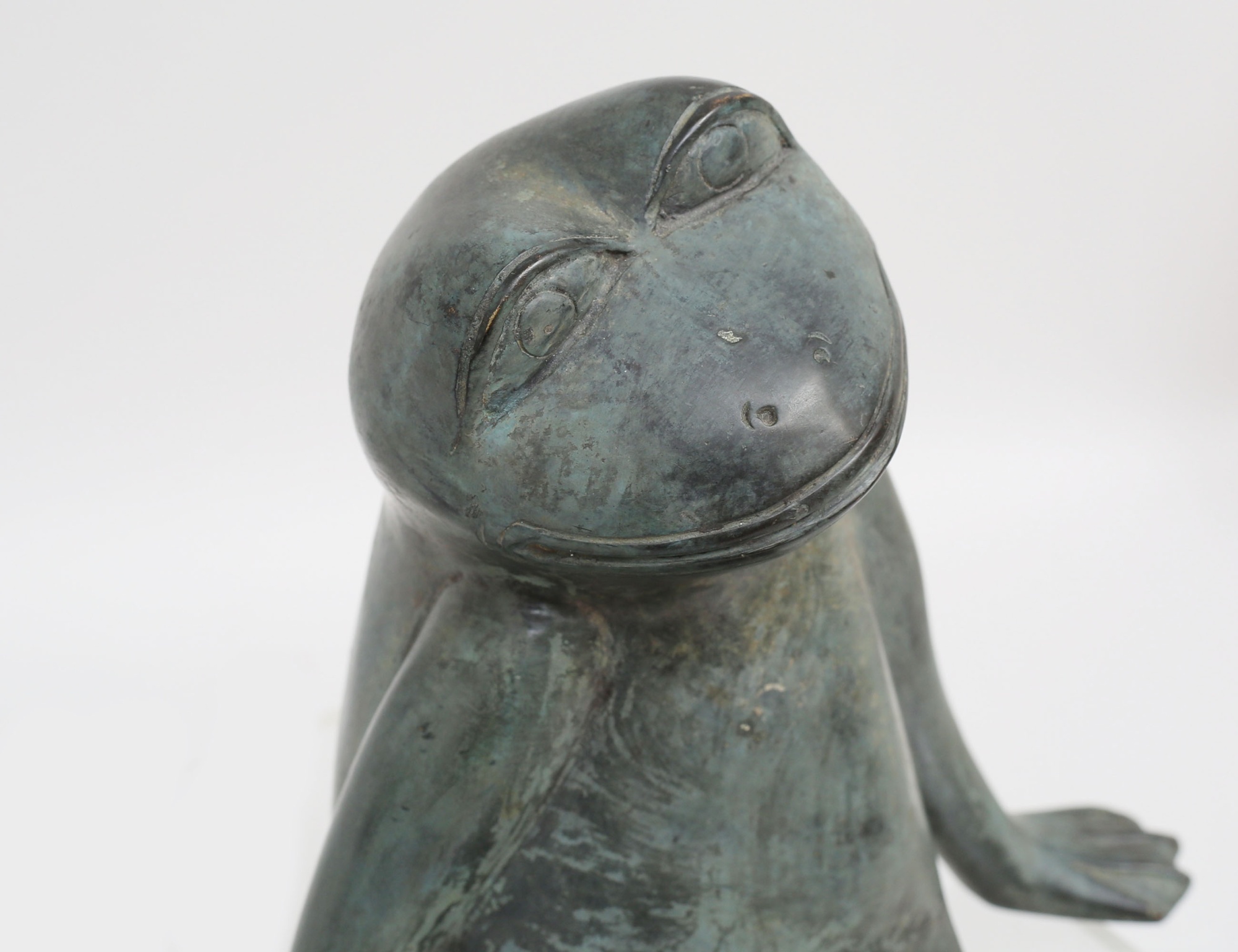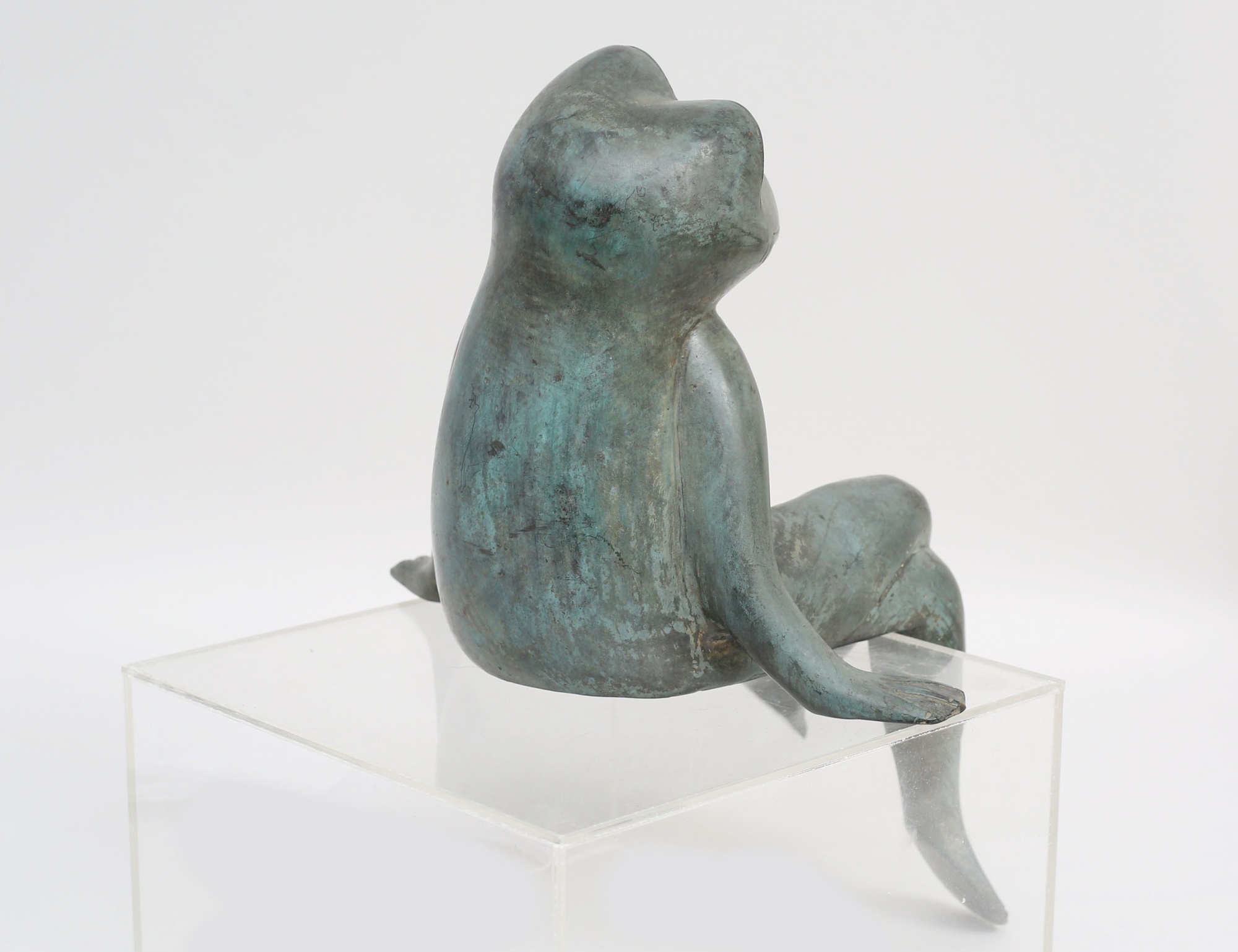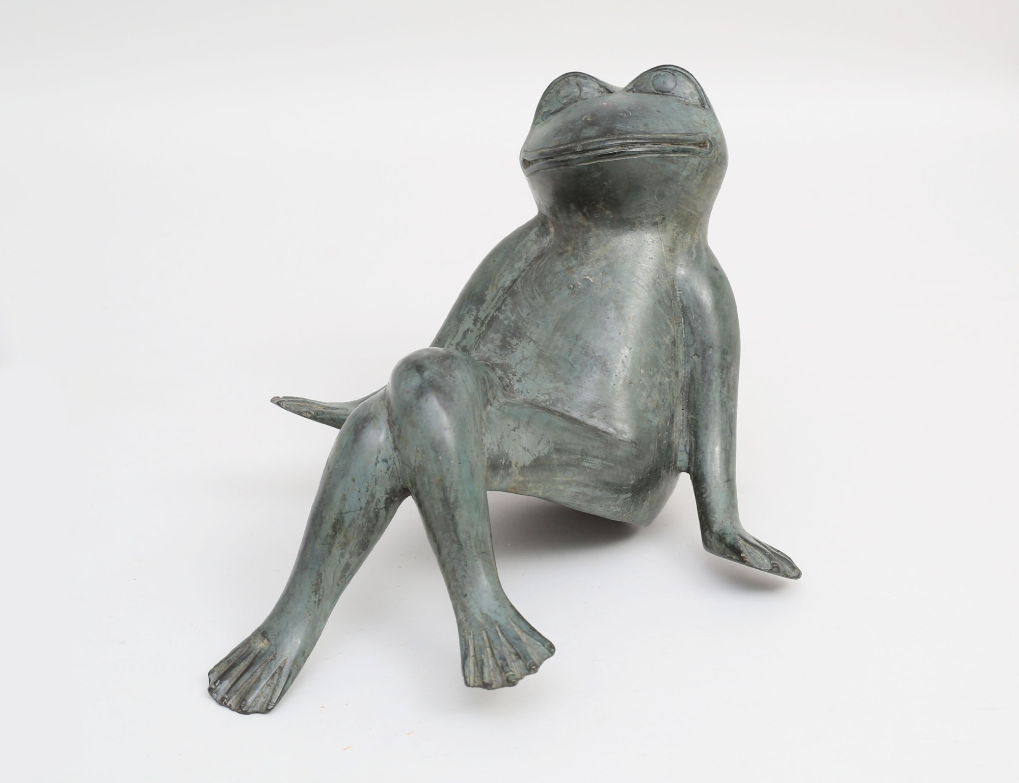 i form av sittande groda, grönpatinerad brons, RR Sweden, höjd 33