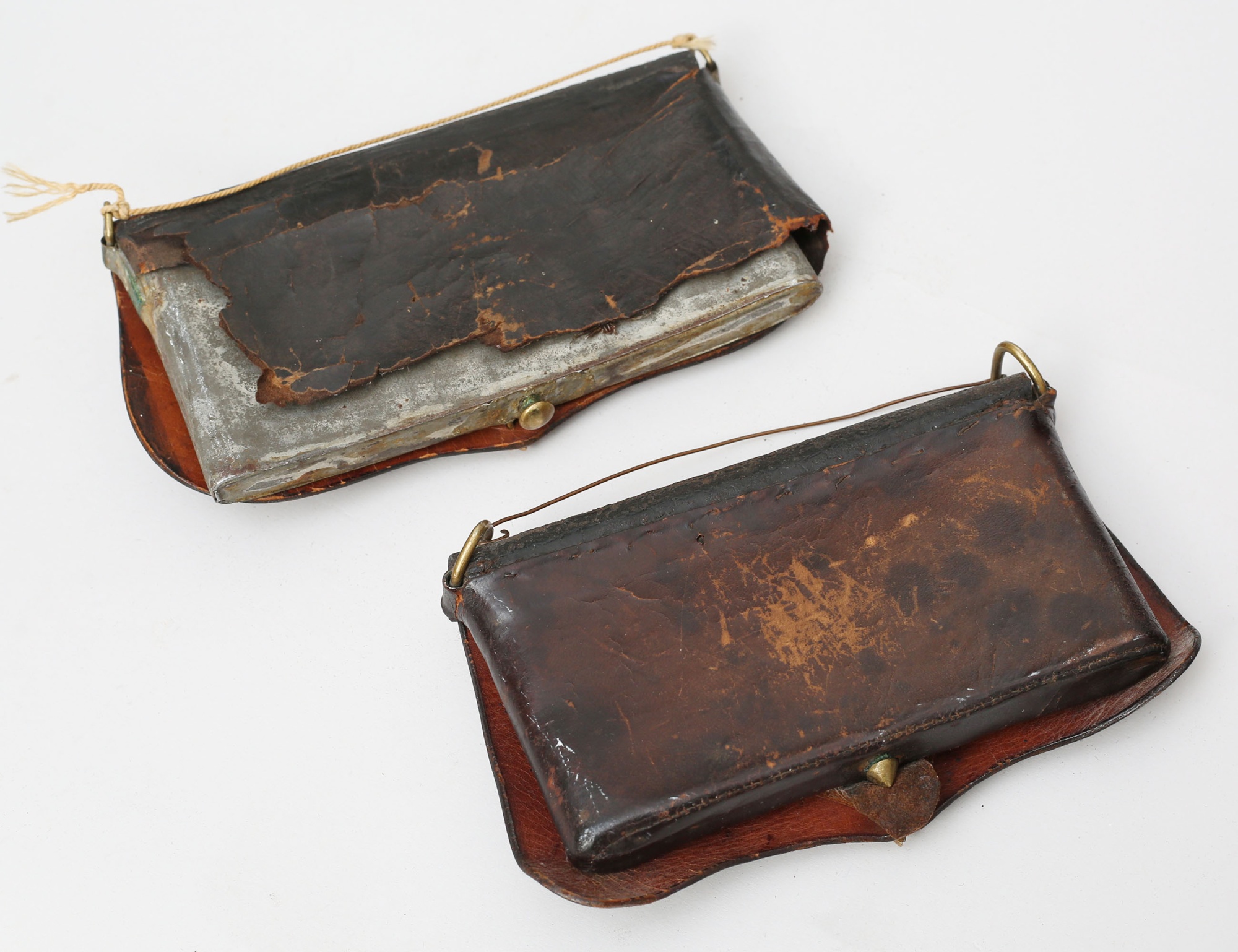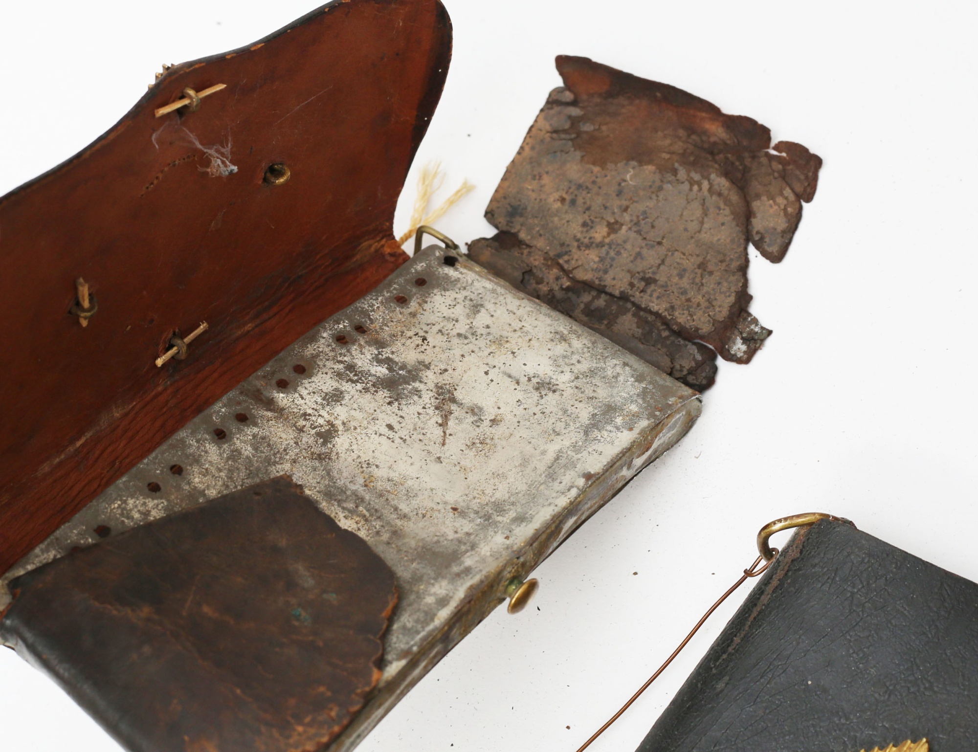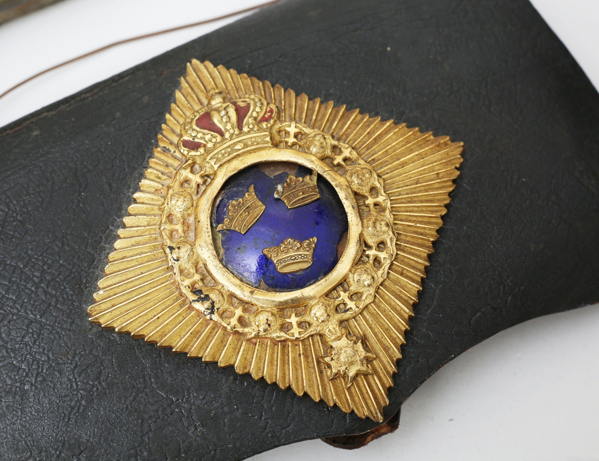 för officer vid skånska dragonregementet, höjd 10/8, bredd 17/15,5 (den ena med emaljskada, den andra med läderskador, slitage) (2)