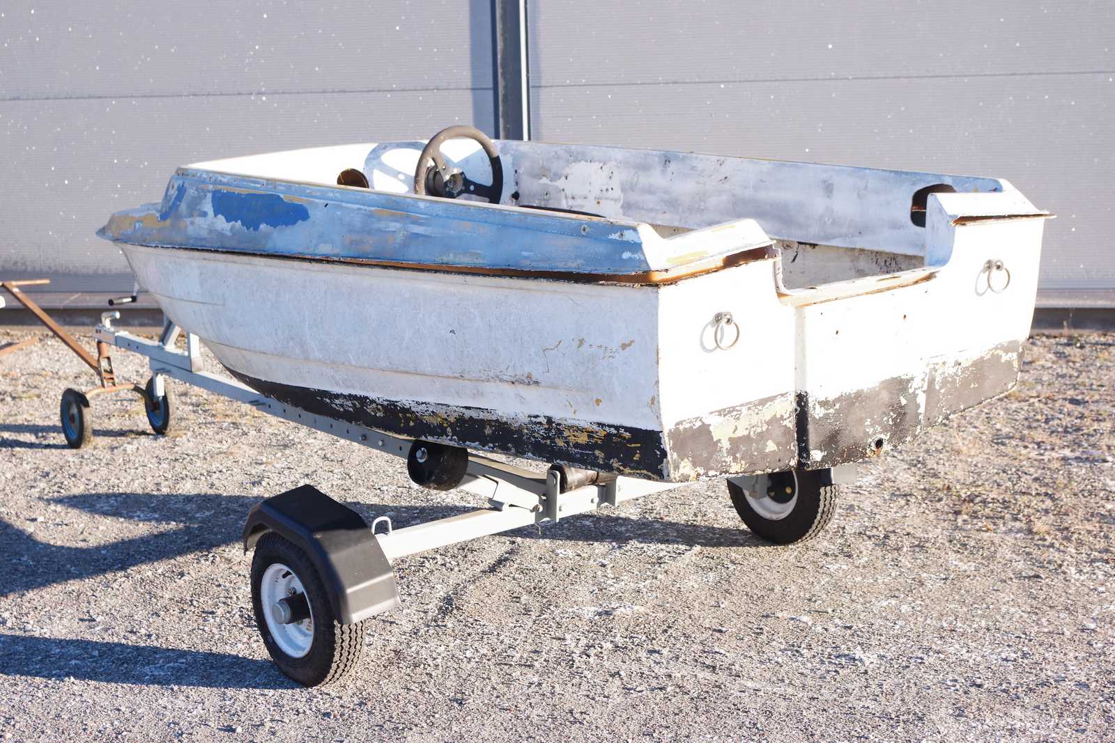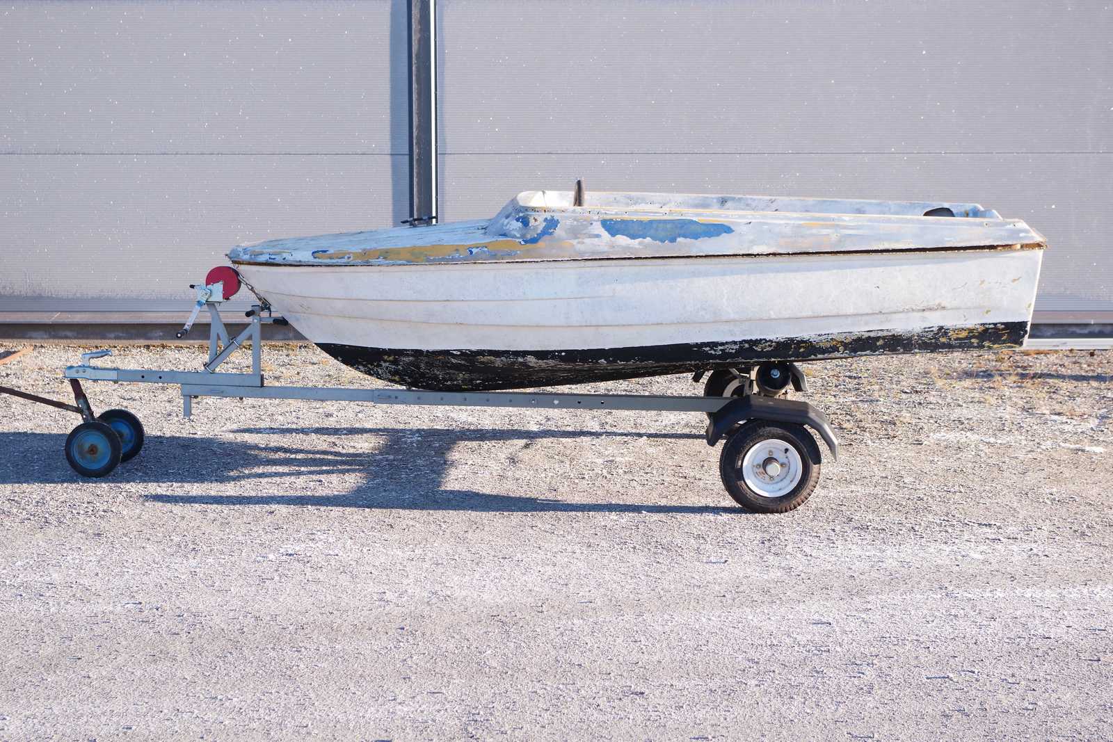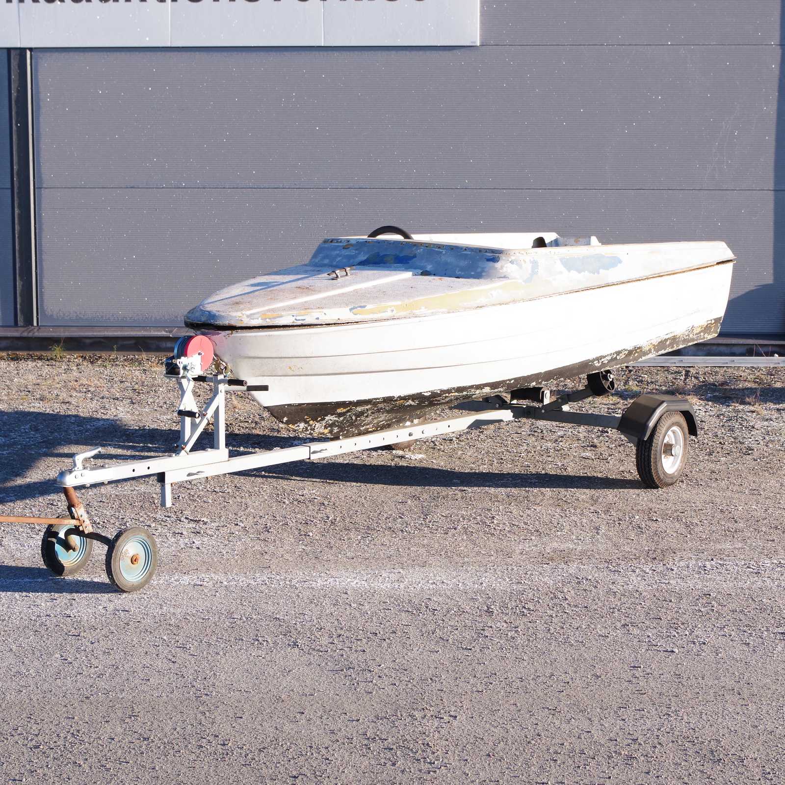 Auktioner SPORTBÅT med motor & ny båtkärra, båtmotor: Mercury 200 "20hp", båt L: 340cm B: 140cm (renoveringsobjekt)