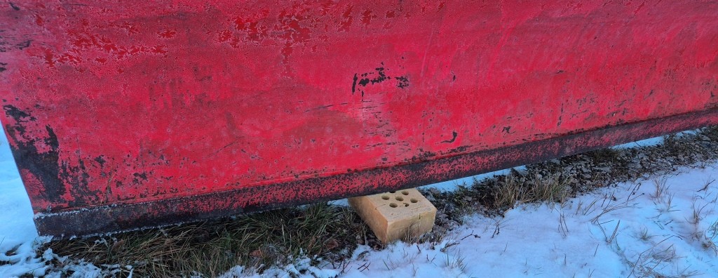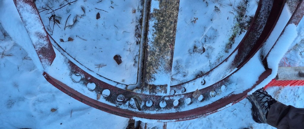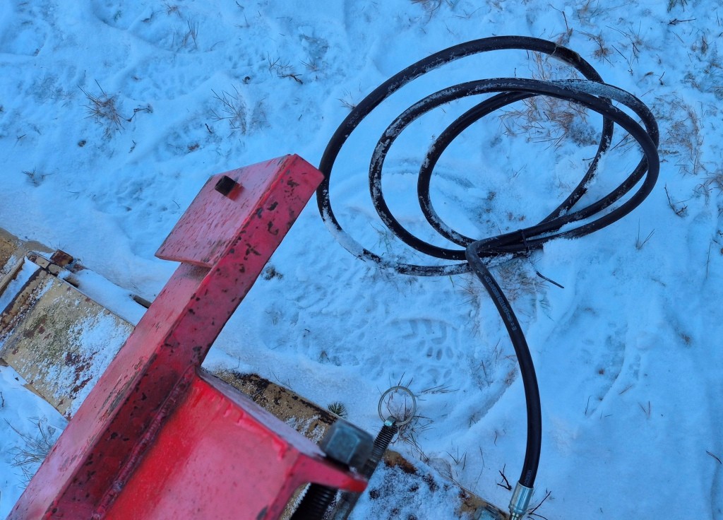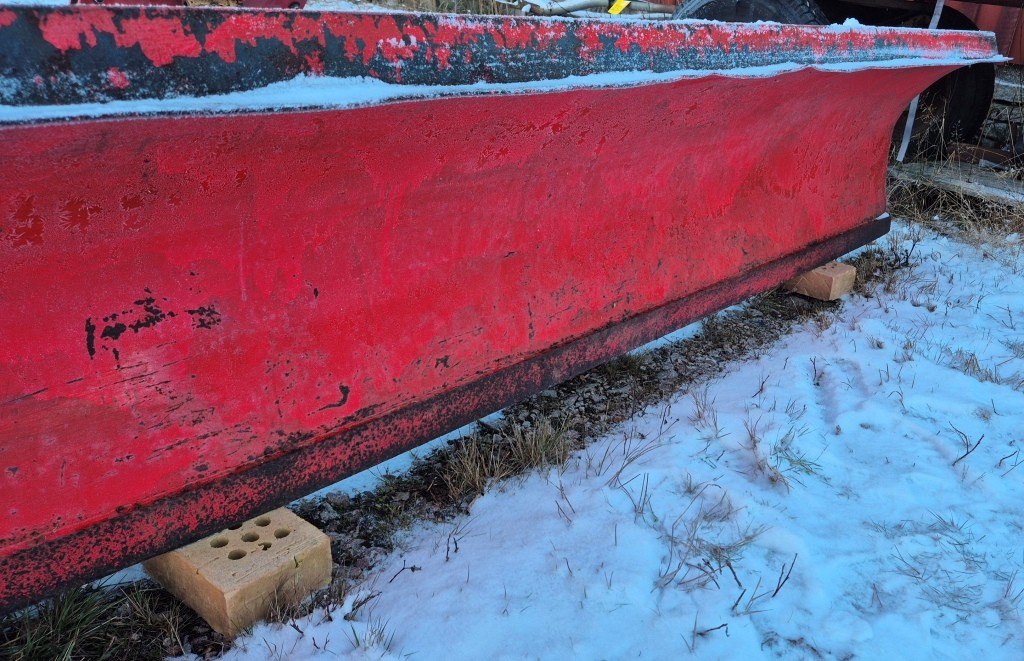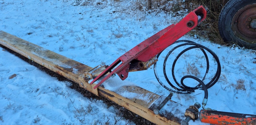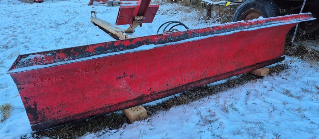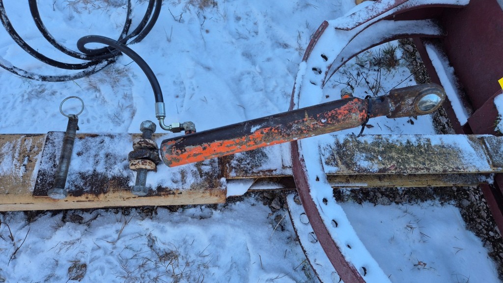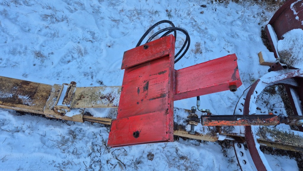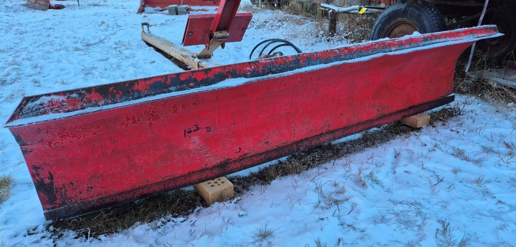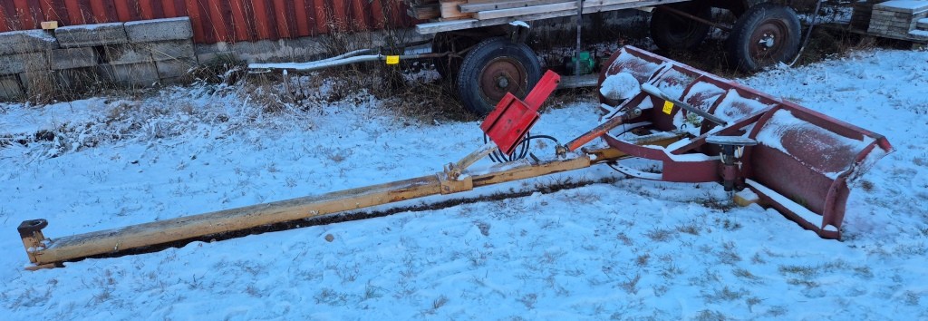 Vridbart snöblad till traktorBredd: 250cmLängd (balk): 420cmInklusive främre fäste till traktorn + lyftkolv. Har suttit på en Massey Ferguson 165