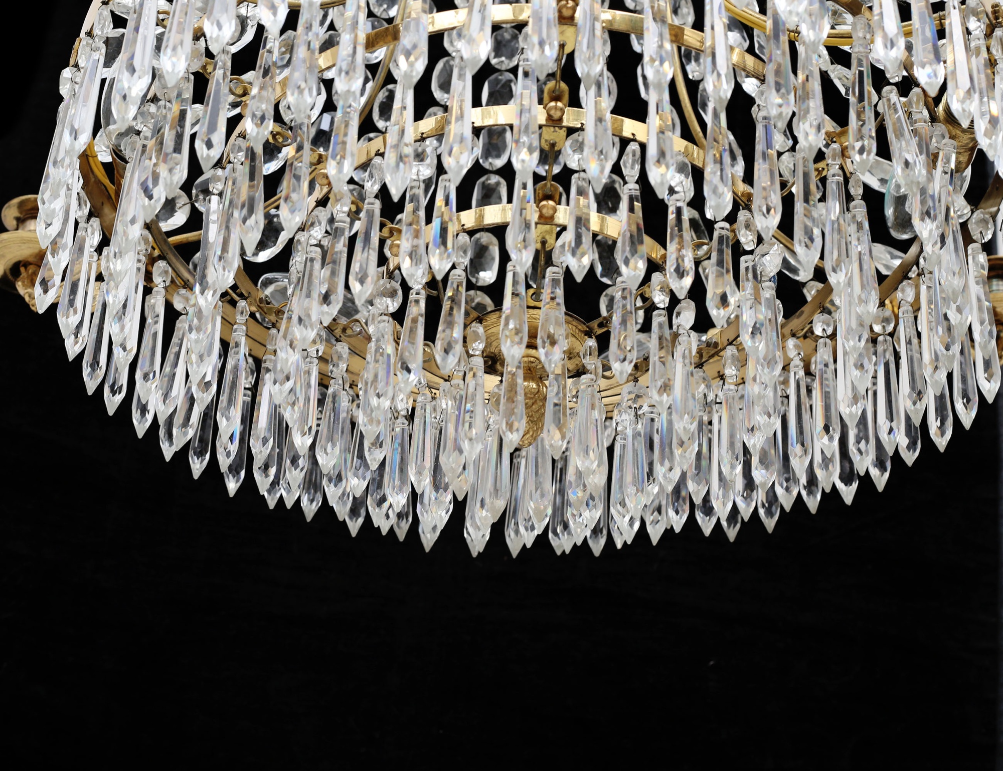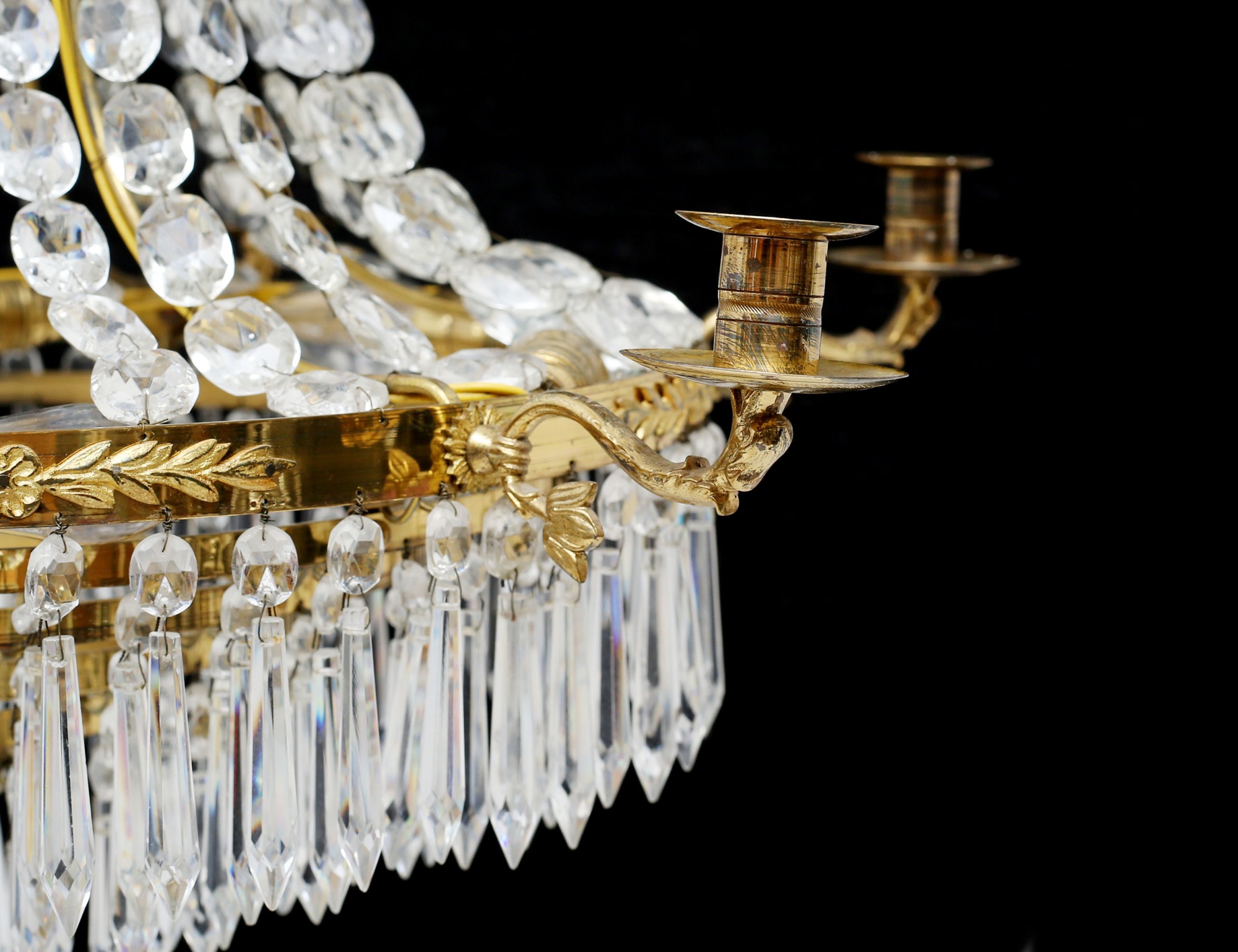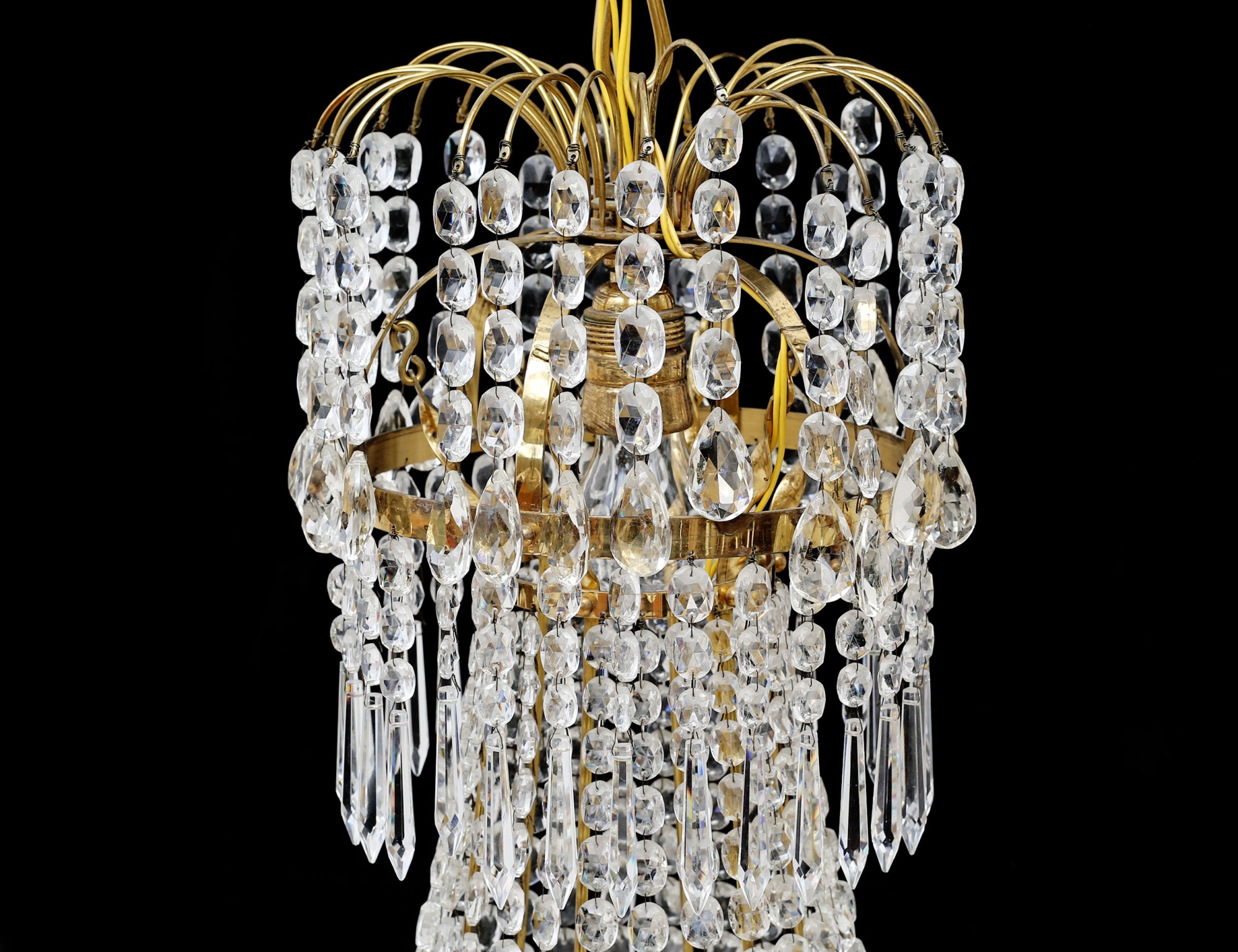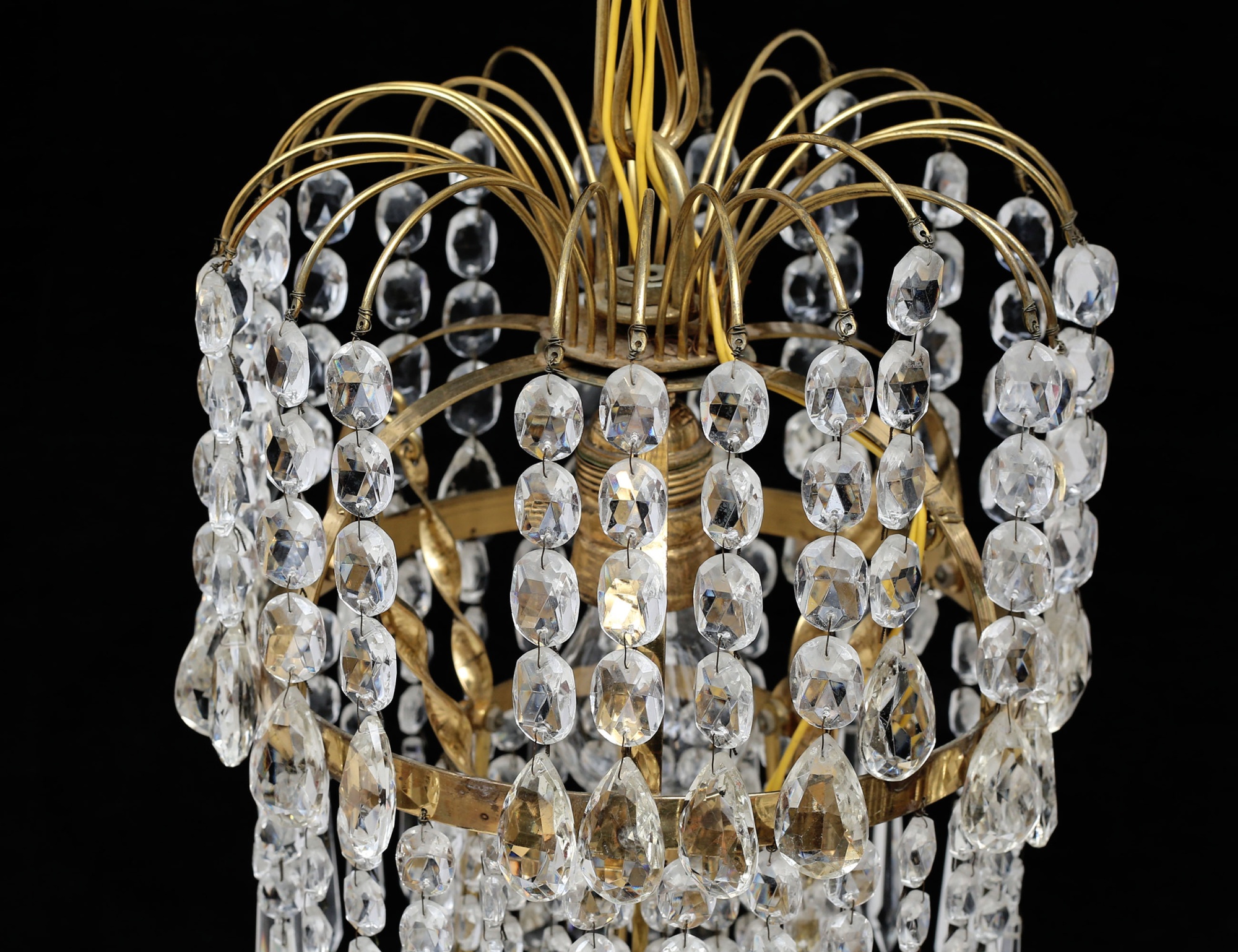 stomme i ornamenterad mässing, för sex ljus, fasettslipade olikformade prismor, piggbotten, höjd 70 (50), diameter 65