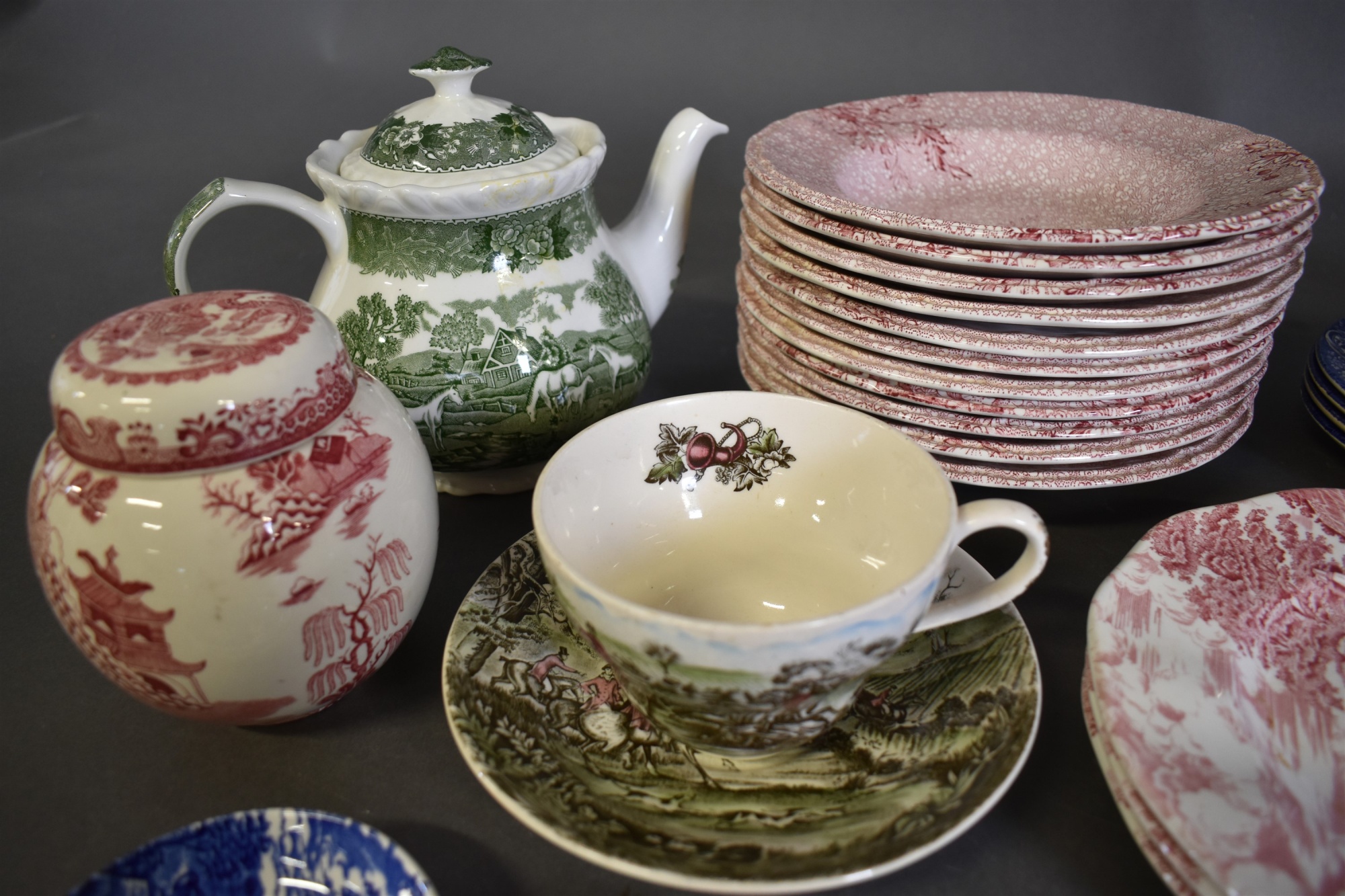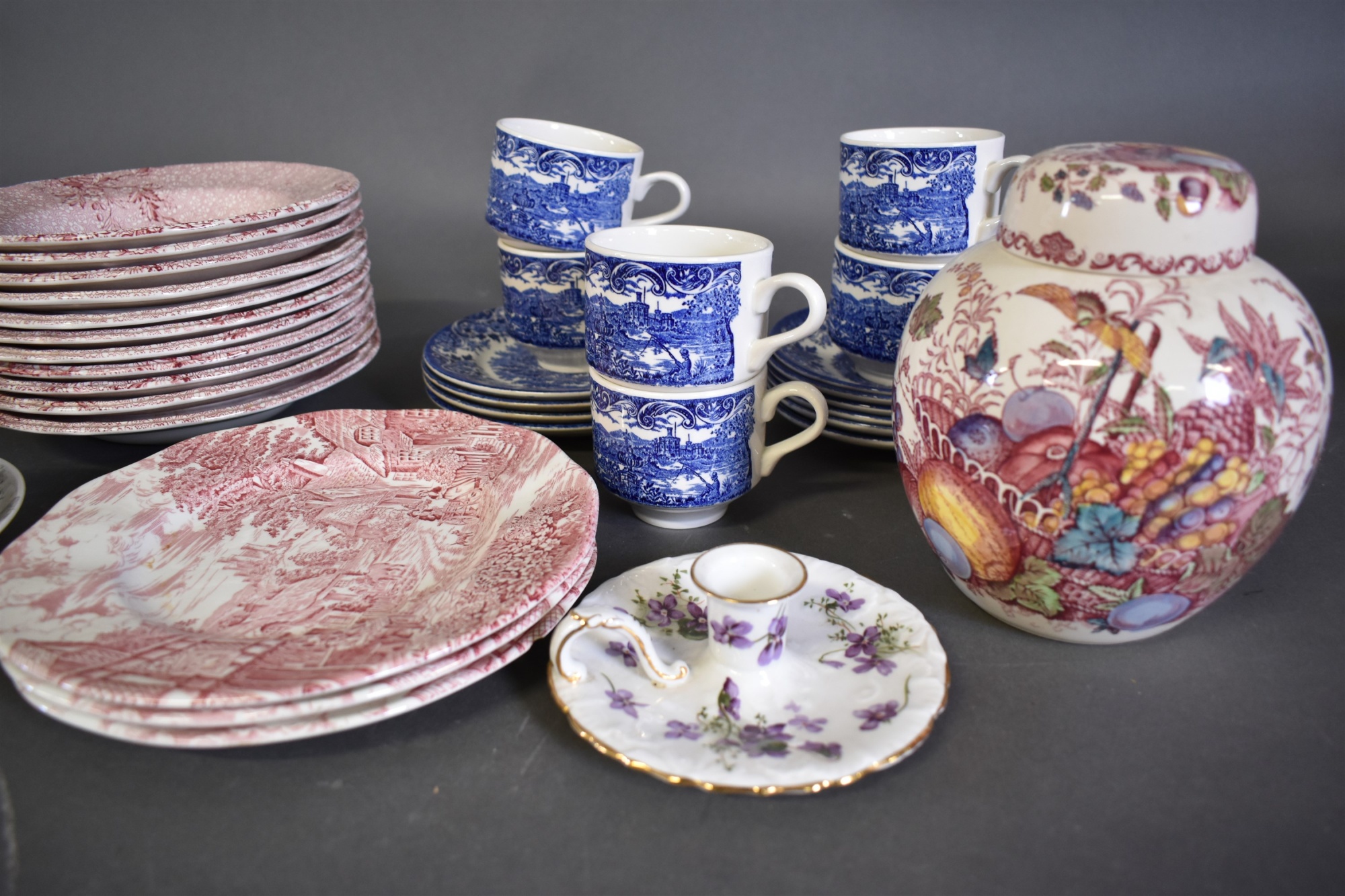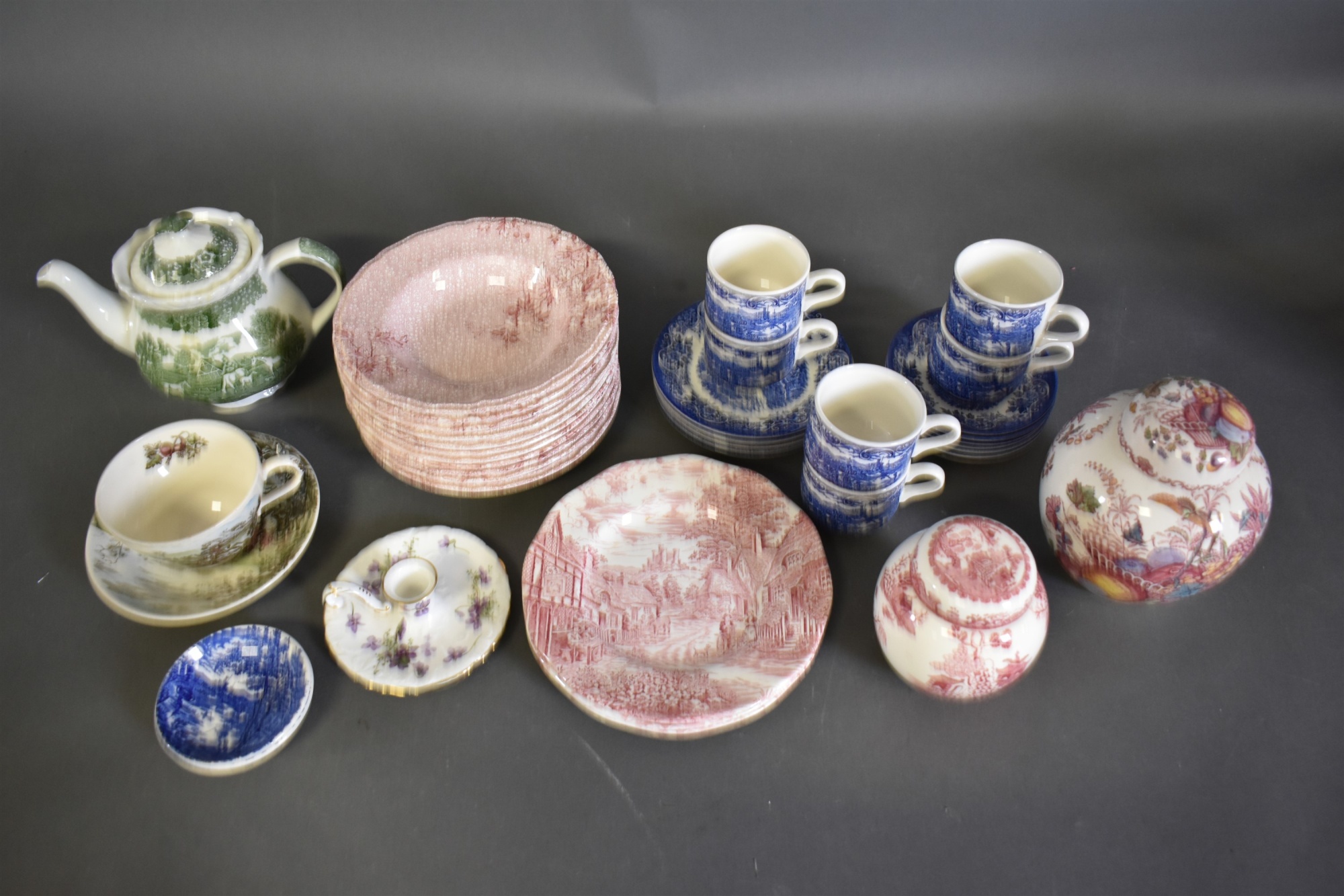 Auktioner Keramik & Porslin Parti porslin, England, bl.a tallrikar, tekoppar & lockurnor högsta 20 cm
