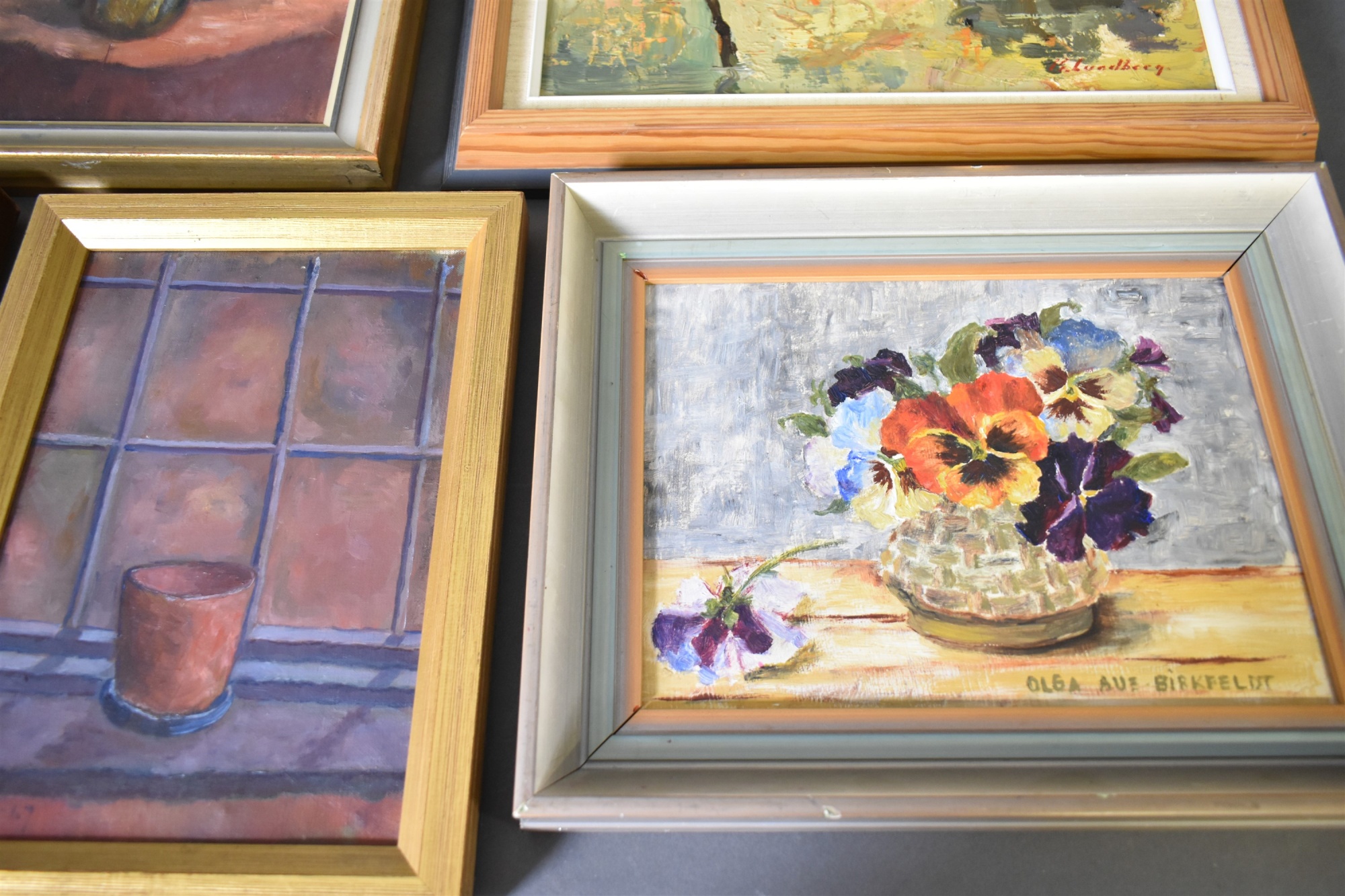 Parti tavlor 7 st, oljor på duk och pannå bla Kurt Lundberg, största mått 44x36 cm