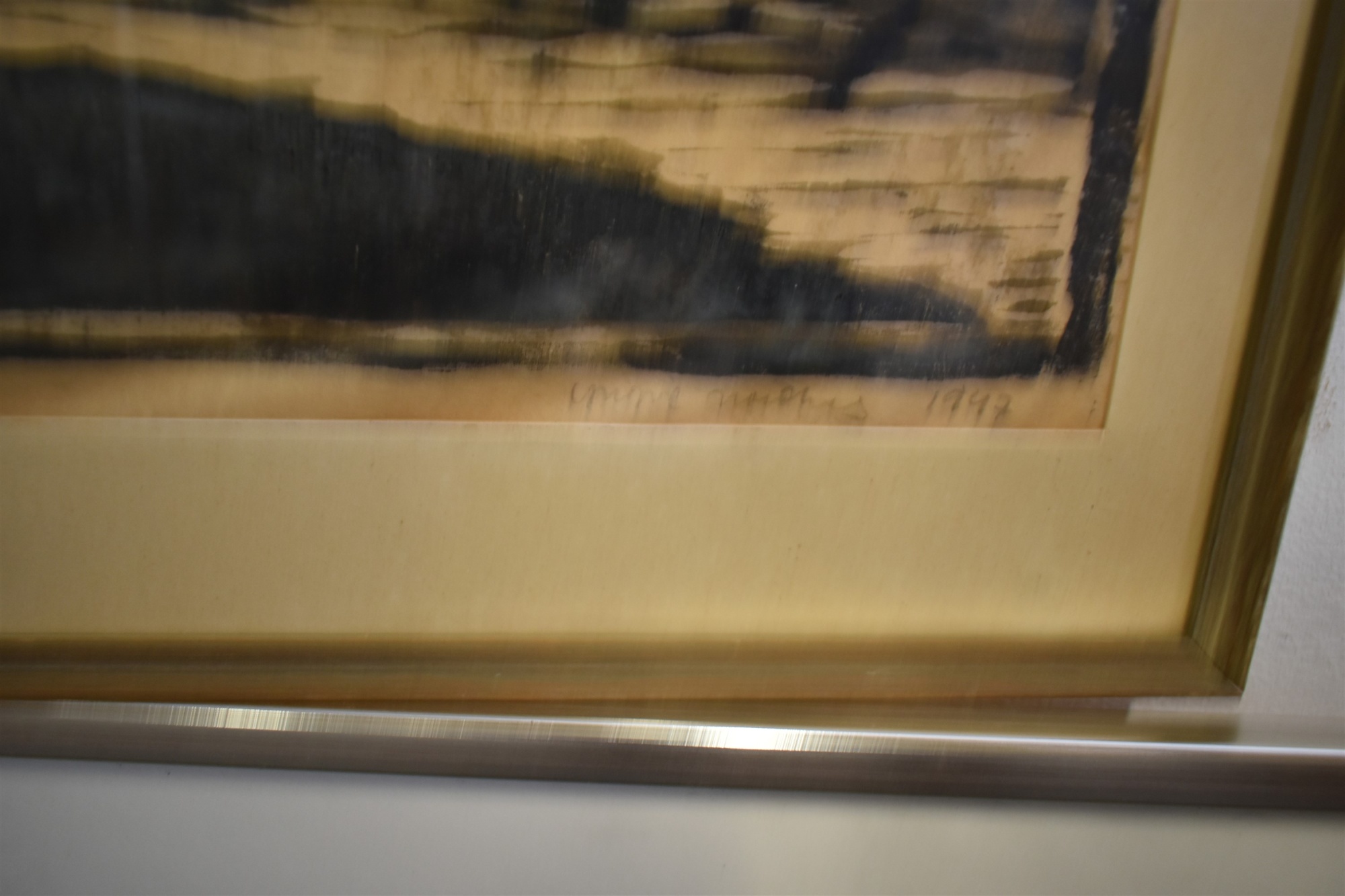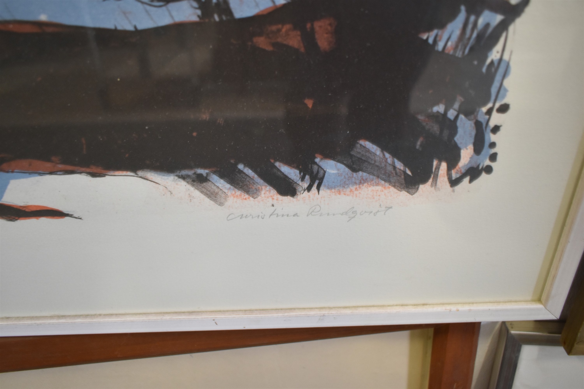 Tavlor 4 st, litografi 3 st & träsnitt största mått 71 x 57 cm