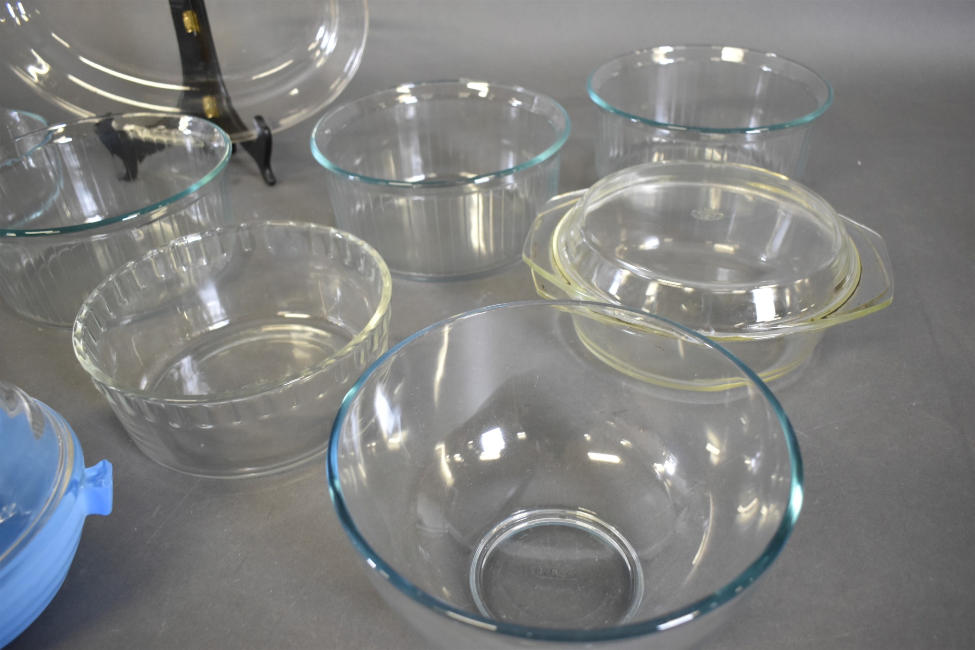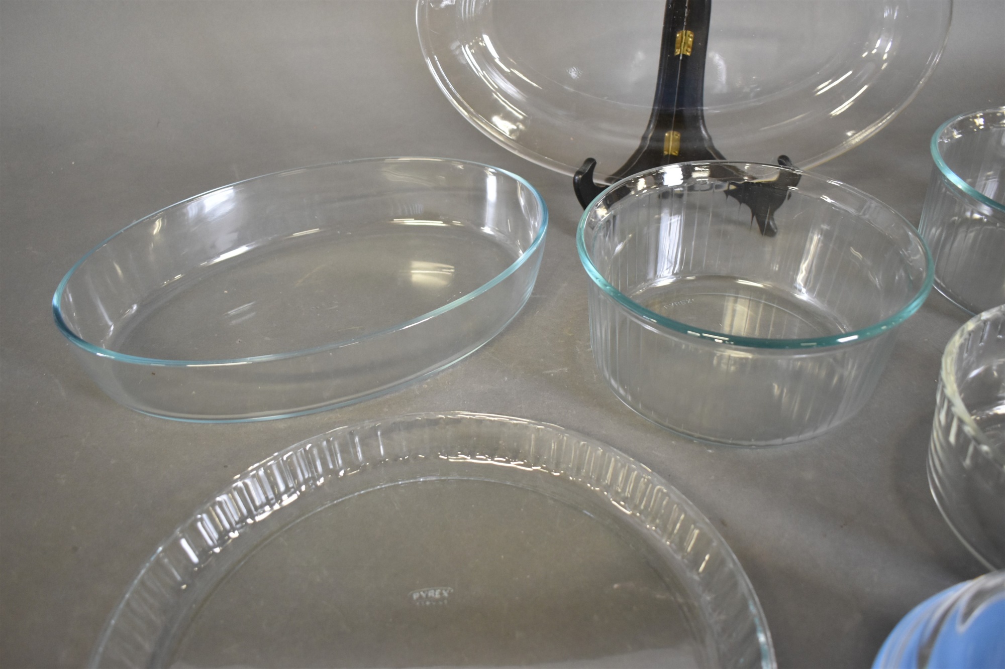 Parti glas, Pyrex bla skålar och formar, längsta mått 40 cm