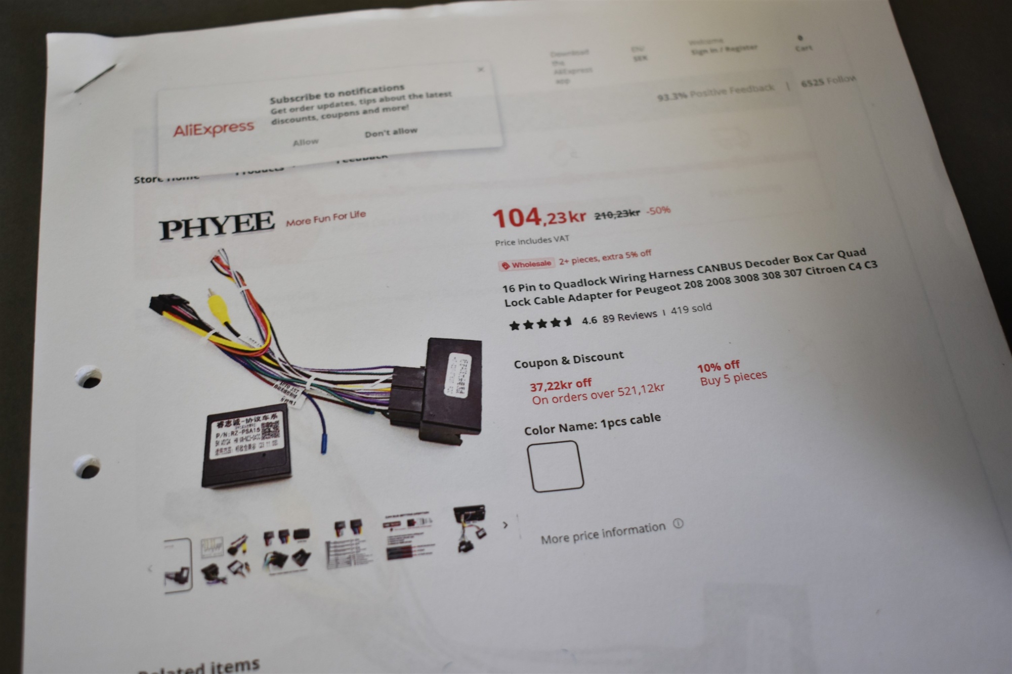 Tillbehör till Peugeot och android radio, tillsynes oanvänt