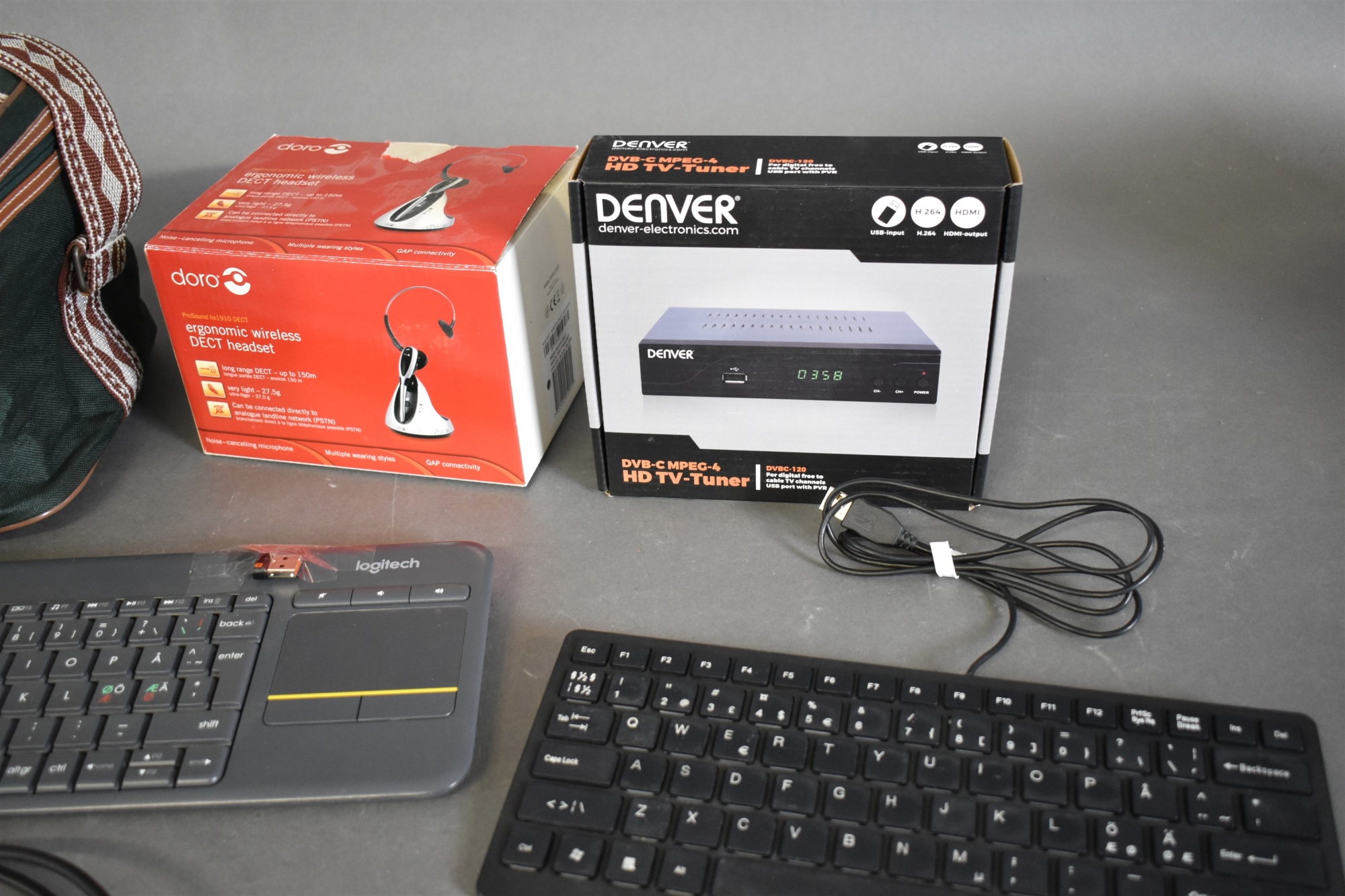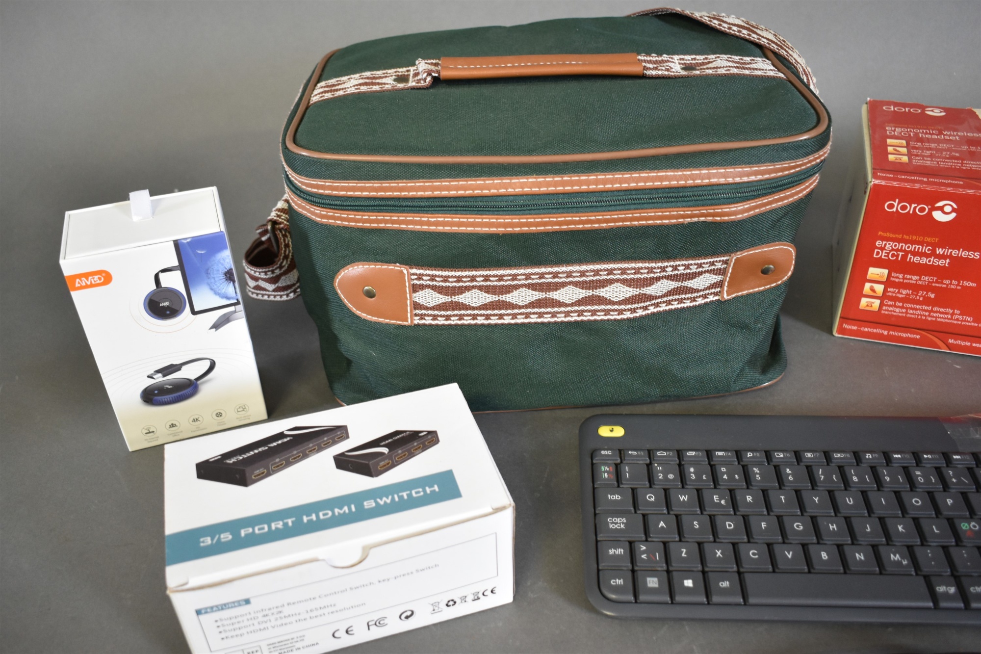 Auktioner Elektronik Parti teknik bla tangentbord, trådlöst headset och HDMI port, längsta mått 35 cm