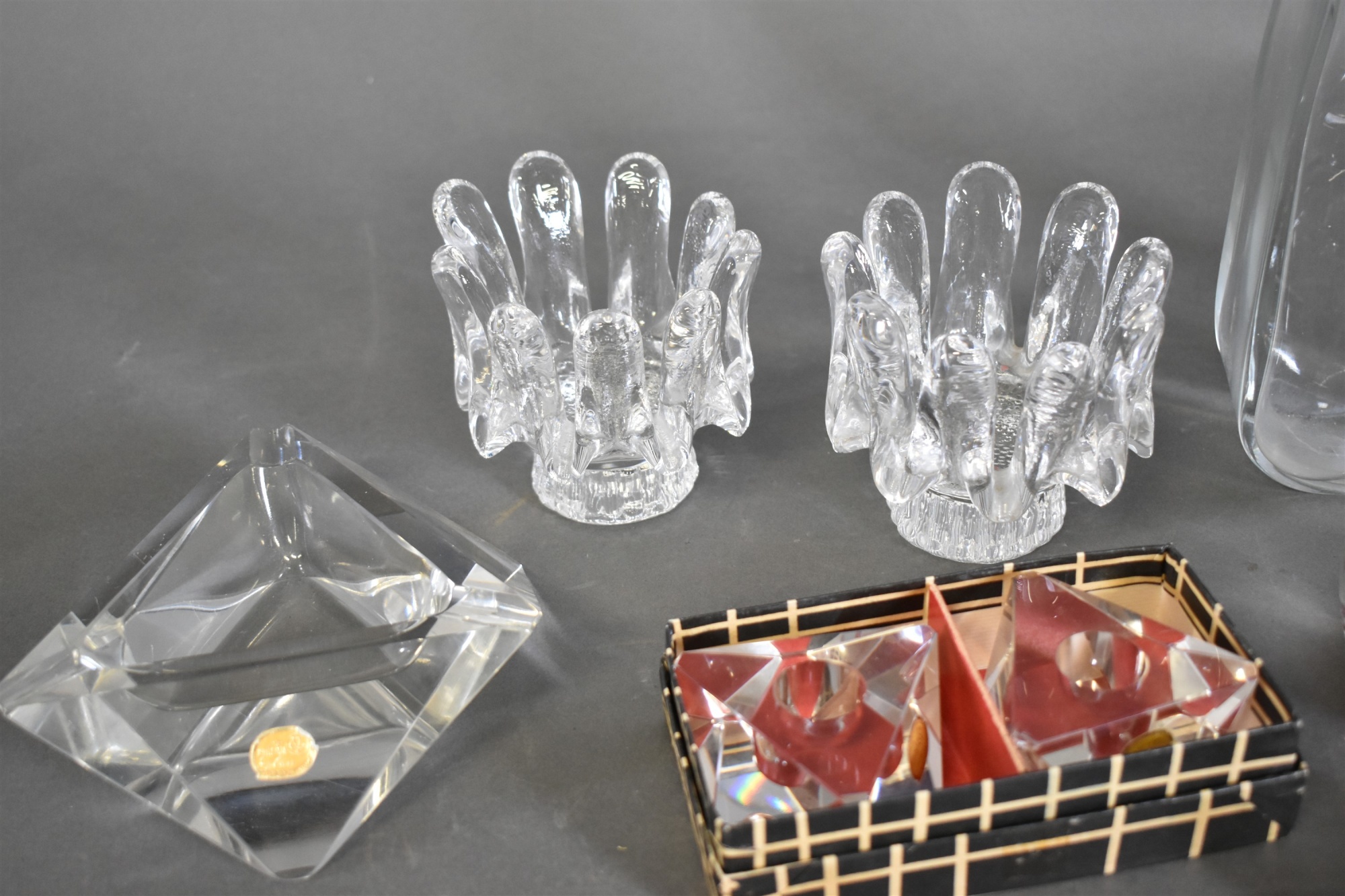 Bilder Parti glas bla ljuslyktor Göran Wärff Kosta Boda "Sunflower", konstglas och småglas, högsta höjd 21 cm