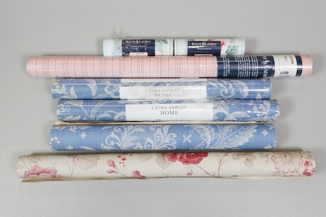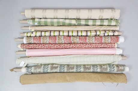 Tyg- och tapetrullar, B = ca 150 o mindre, bl.a. Suffolk Leaf