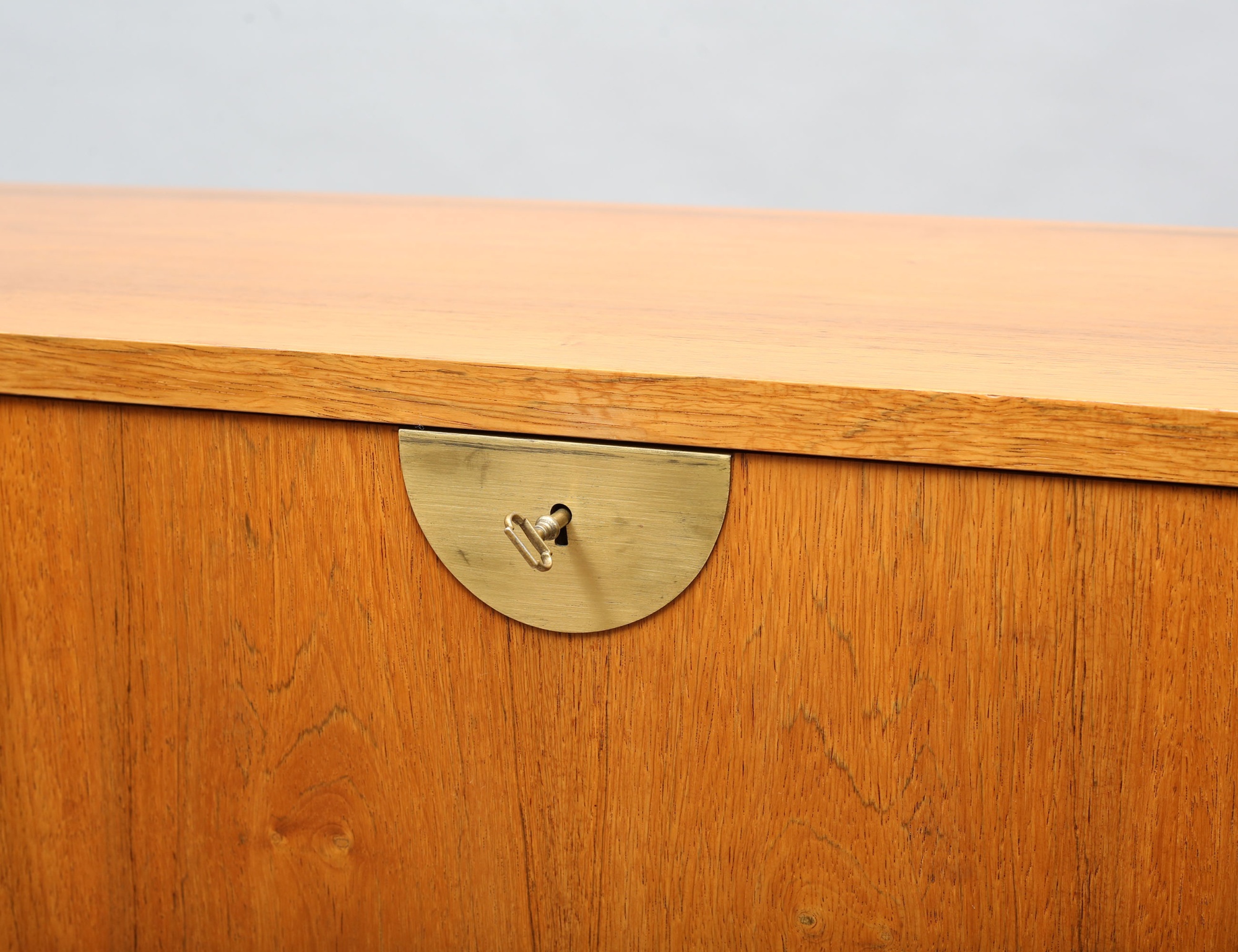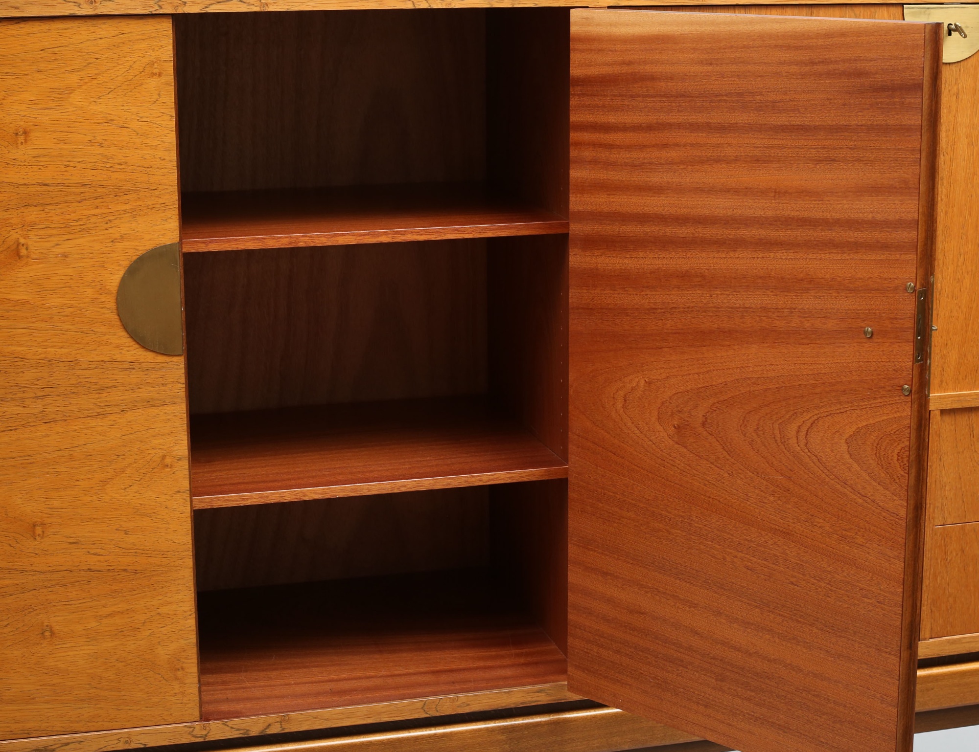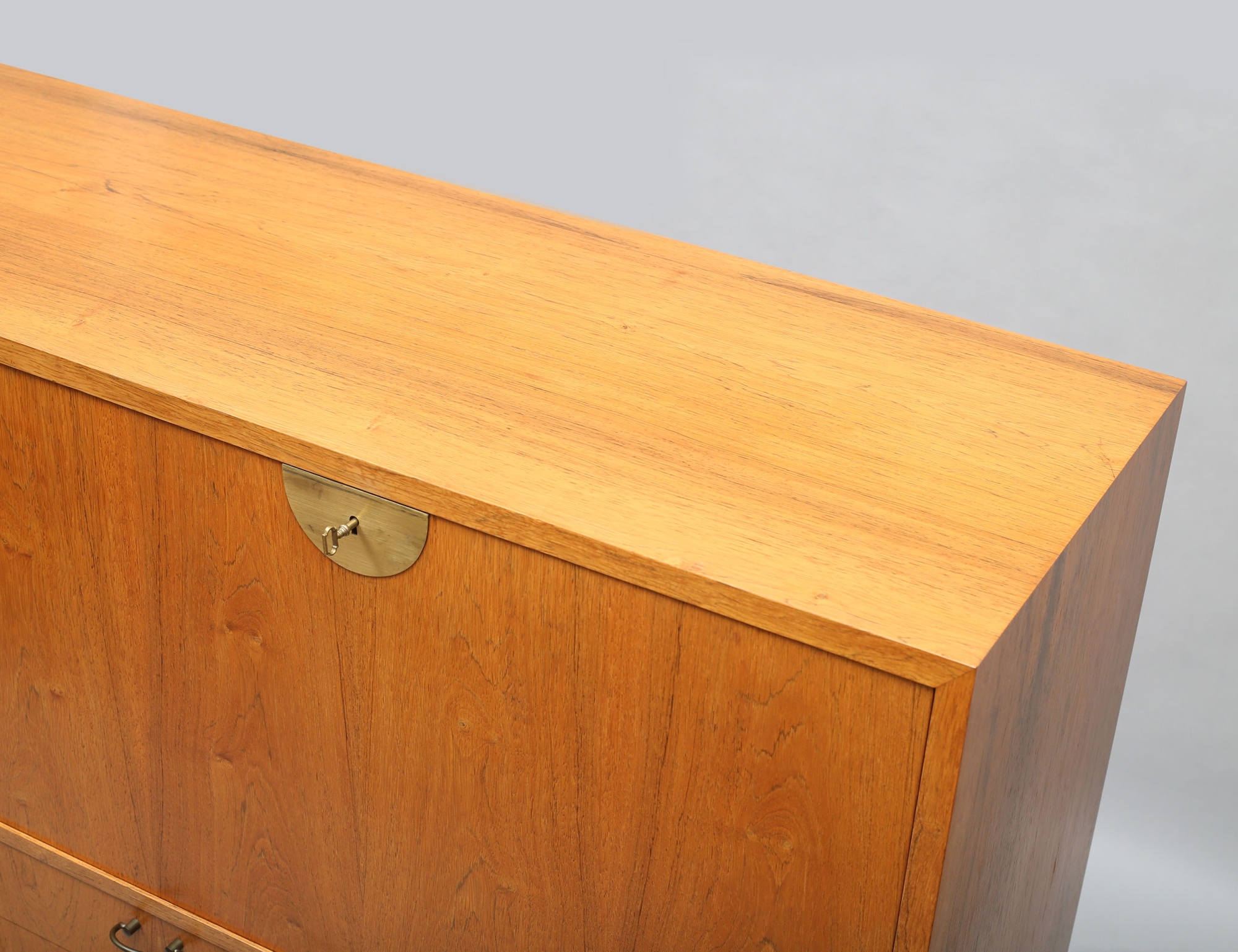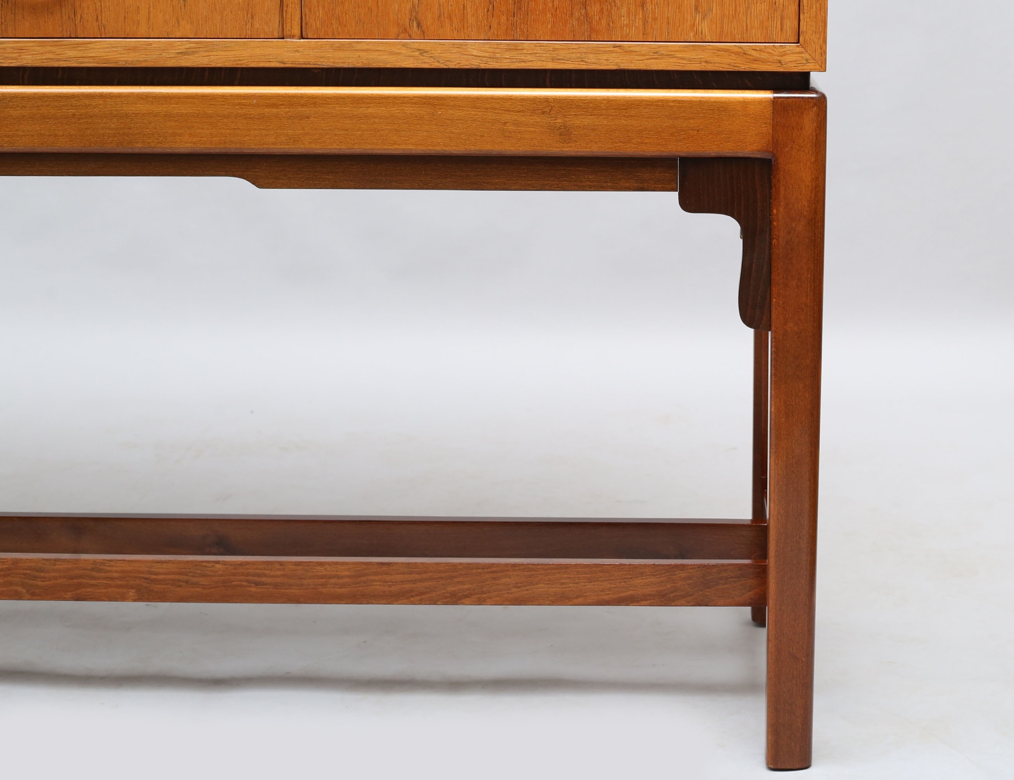 oidentifierad formgivare, på benställning, jakaranda, fronten med två skåp varav ett med klaff, fem lådor, beslag och handtag av mässing, höjd 140, bredd 175, djup 43, citesintyg medföljer (obetydligt bruksslitage)