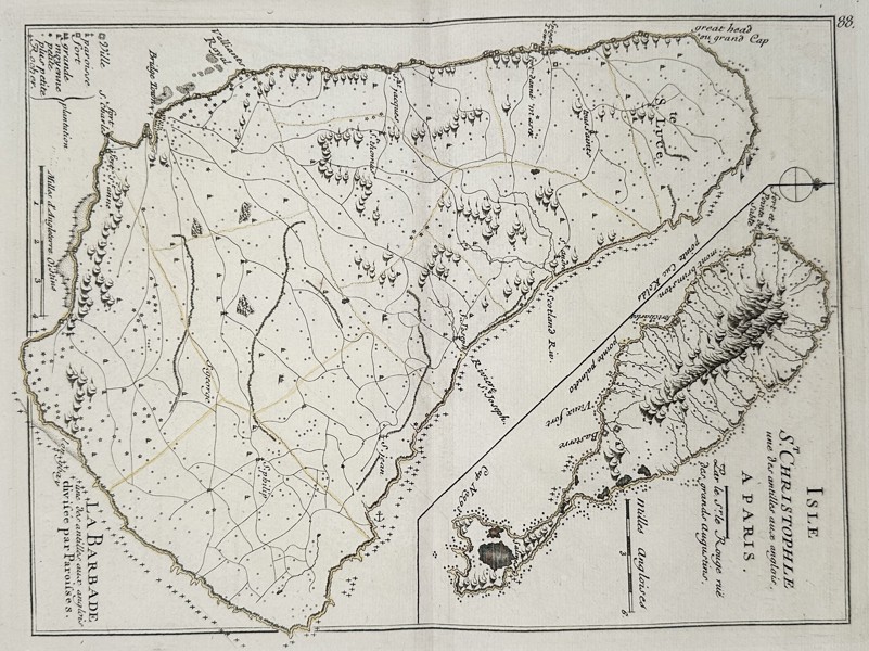 Bilder Georges-Louis Le Rouge (c. 1712–1790) – Map of St. Christopher (St. Kitts) Island, Caribbean – Copperplate engraving (c. 1760)