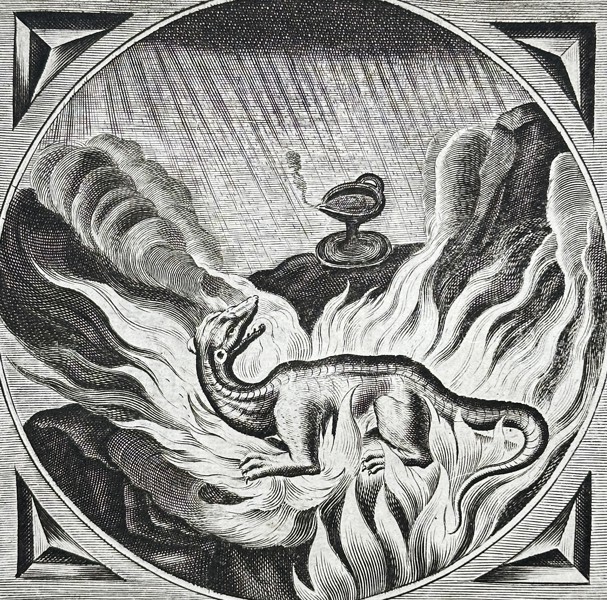 Bilder Jacob Cats (1577–1660) – Emblem of the Salamander: All Who Envy, Remain Free of Trouble – Engraving (c. 1620)