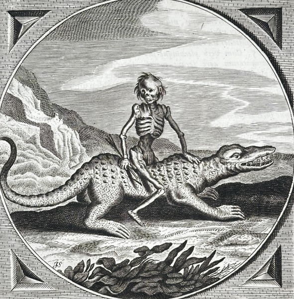 Bilder Jacob Cats (1577–1660) – Emblem of the Crocodile: He Knows Not How to Have Restraint – Engraving (c. 1620)