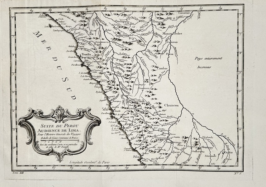 Bilder Antoine-François Prévost d'Exiles (1697–1763) – Map of Peru: The Audience of Lima and the Pacific Coast – Copperplate engraving (c. 1750)