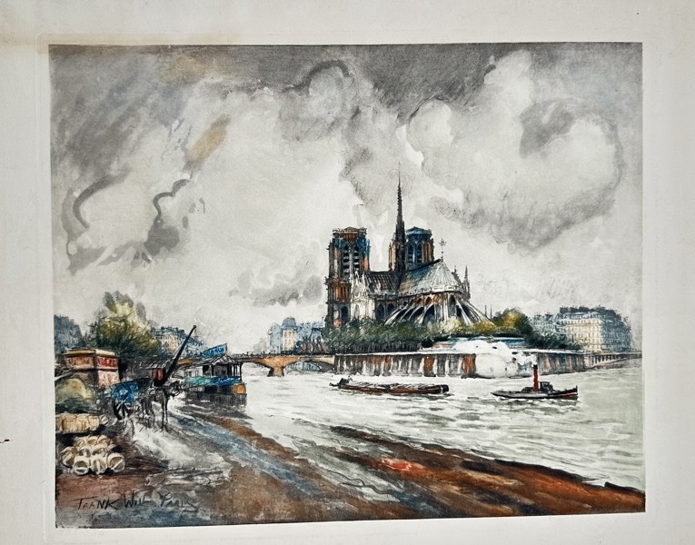 Bilder Frank Will (1900–1951) – View of Notre Dame and the Seine River, Paris, France – Offset print (20th Century)