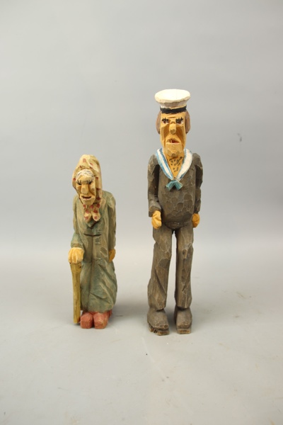 Bilder Träfigurer, 2 st, signerade Lyckåsarn A.P., 1900-tal.