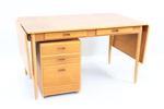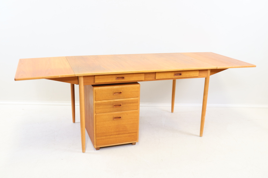 Skrivbord med klaffar, 2 lådor, samt hurts med 3 lådor, teak, 1900-talets andra hälft.