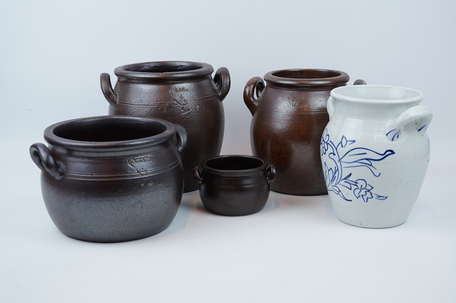 Krus, 5 st, keramik, bl.a Höganäs och Raus.