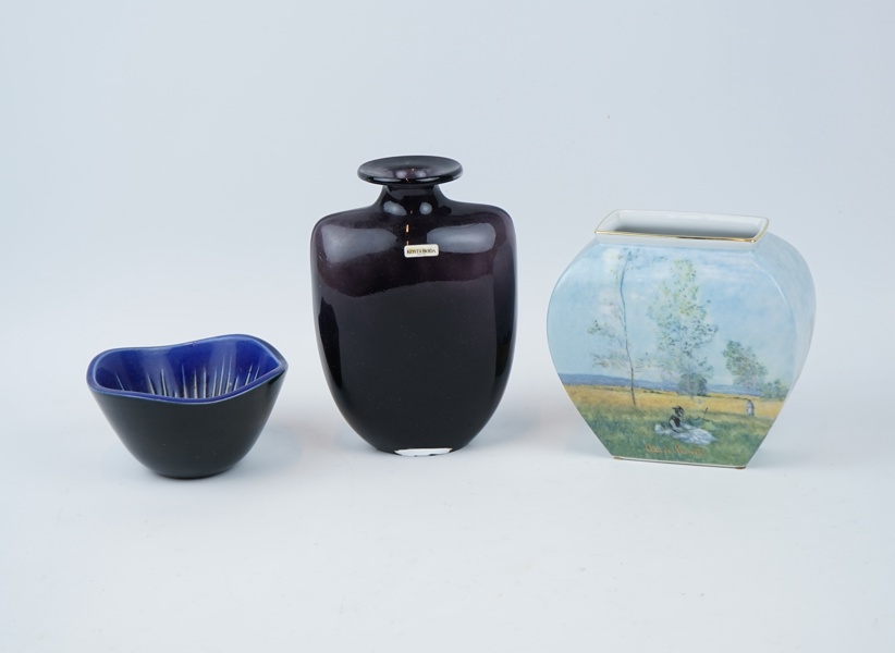 Bilder Vaser och skål, 2+1 st, keramik/glas/porslin, Rörstrand, Kosta Boda och Goebel.