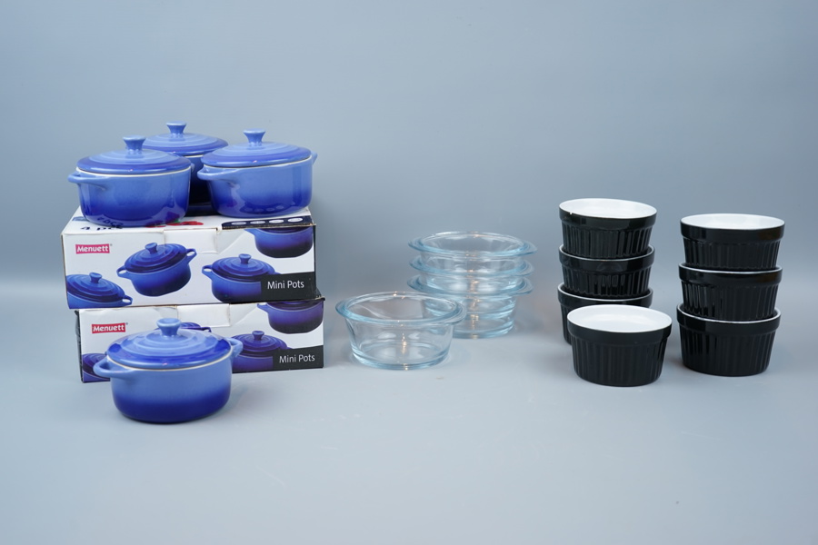 Formar och grytor, 23 st, keramik/glas, bl.a Menuett och Pyrex.