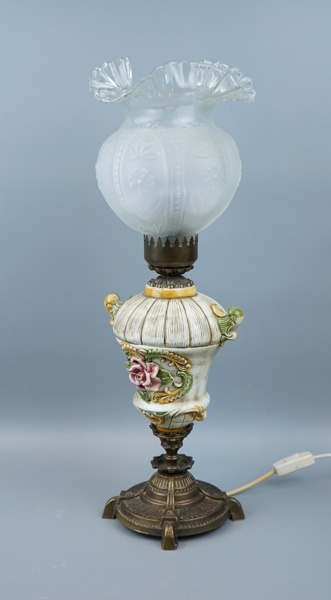 Fotogenlampa, elektrifierad, metall/keramik/glas.