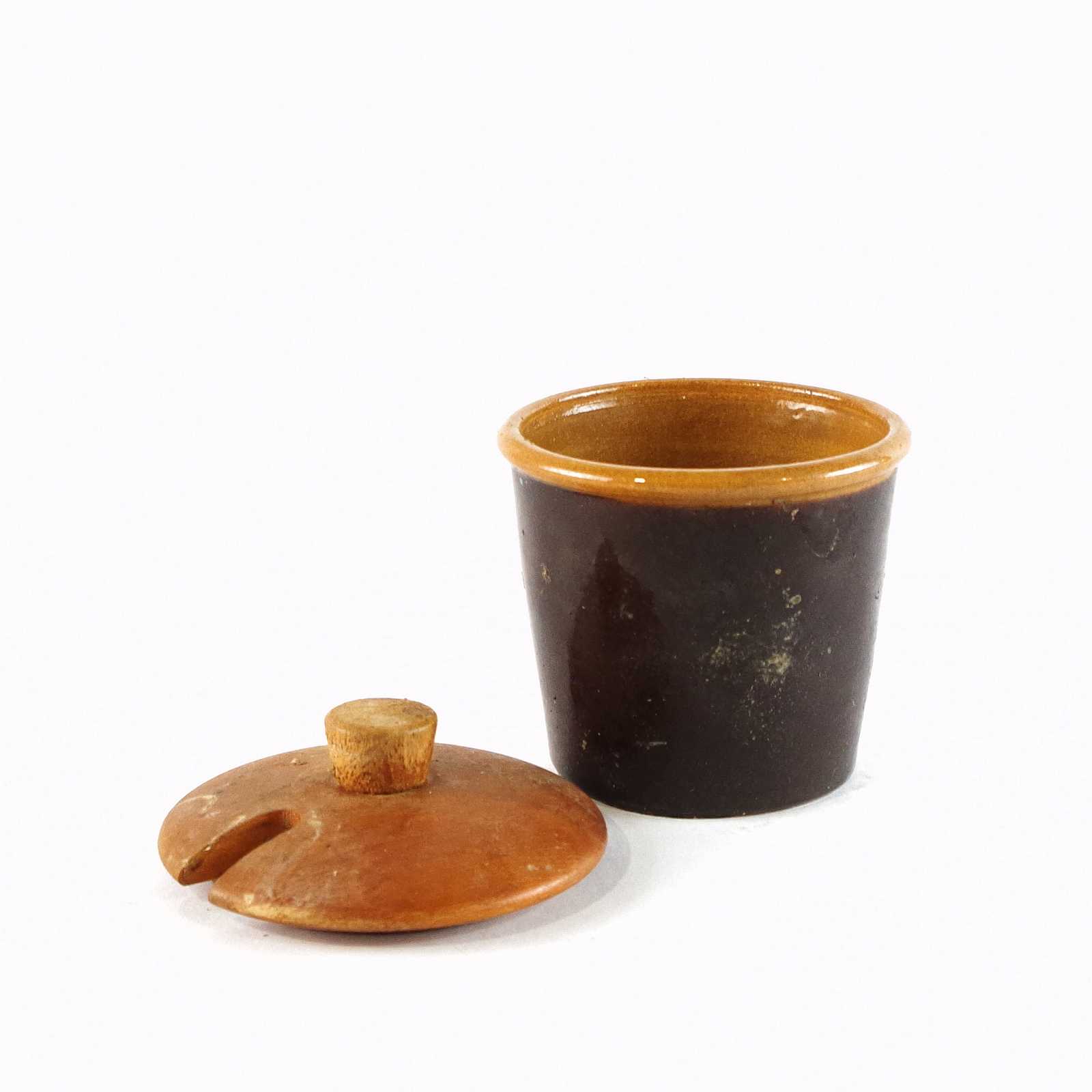 SENAPSSKÅL med teaklock, Höganäs H: 9cm.
