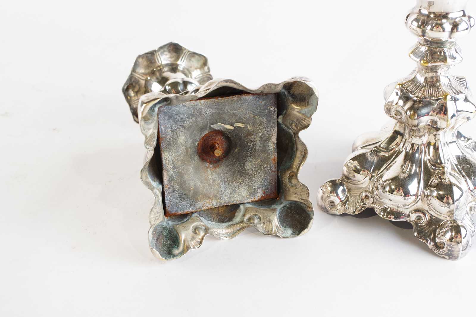 LJUSSTAKAR 1 par, barockstil, vitmetall. H:16,5cm.