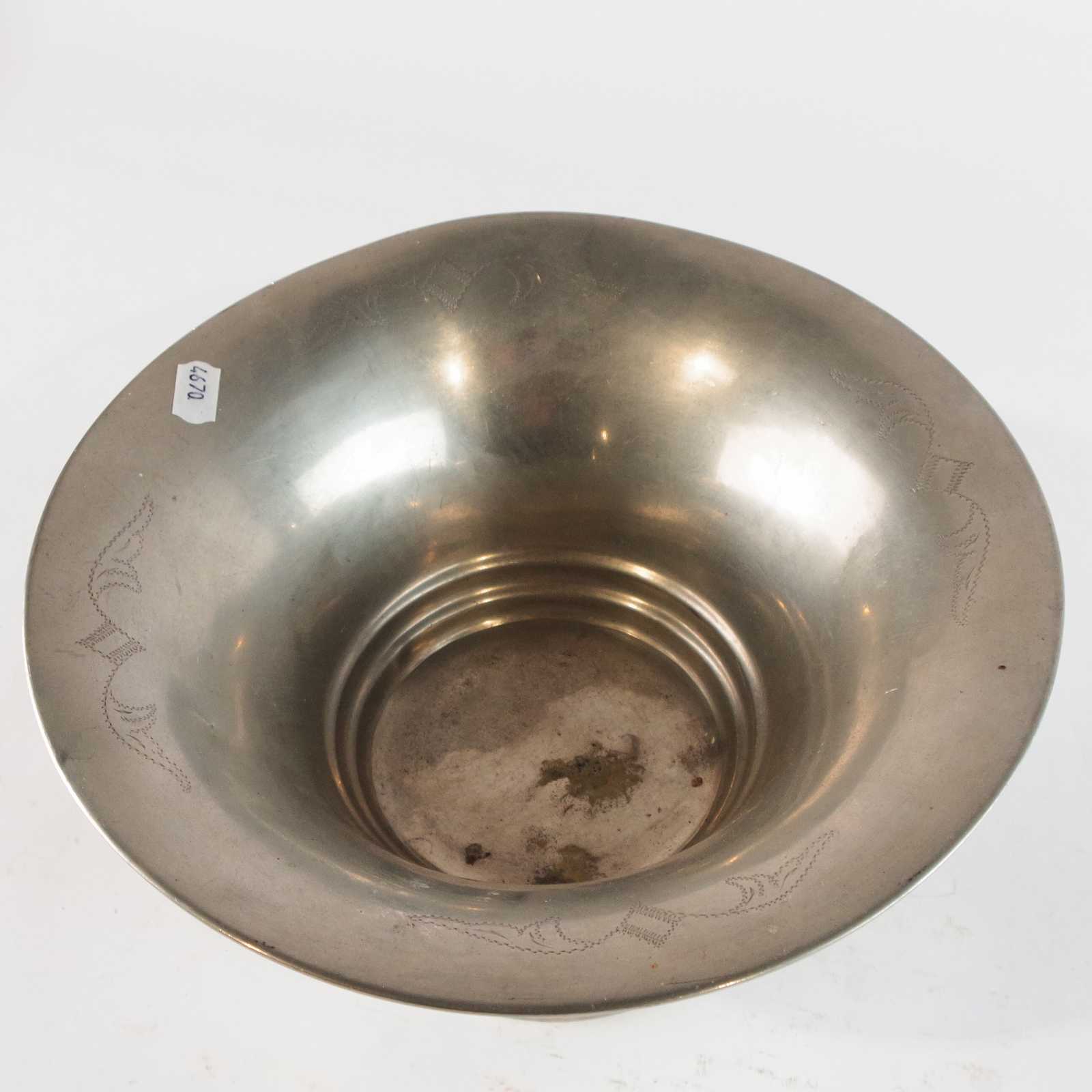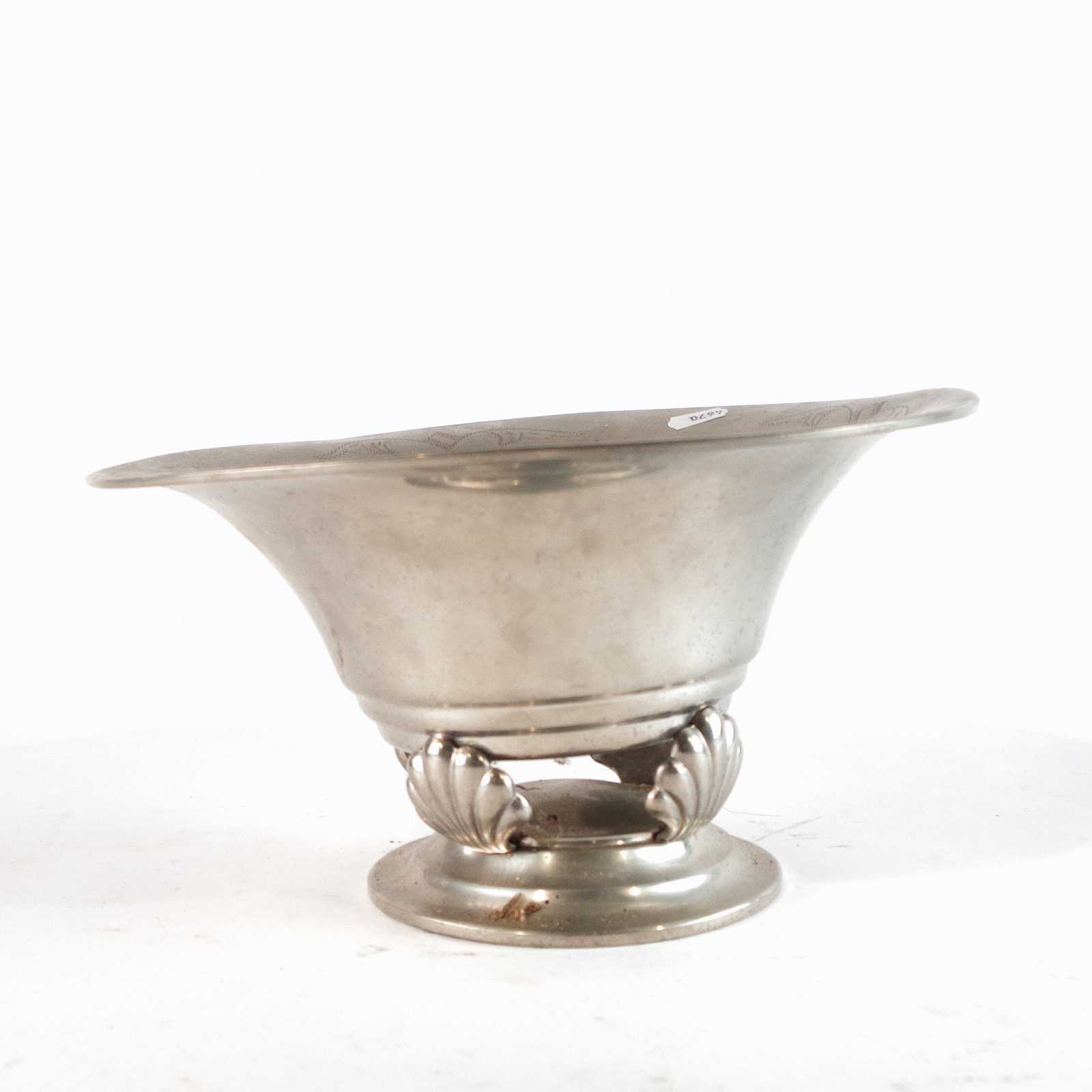 SKÅL tenn, art deco. H:14,5cm D:27cm. (bucklor)