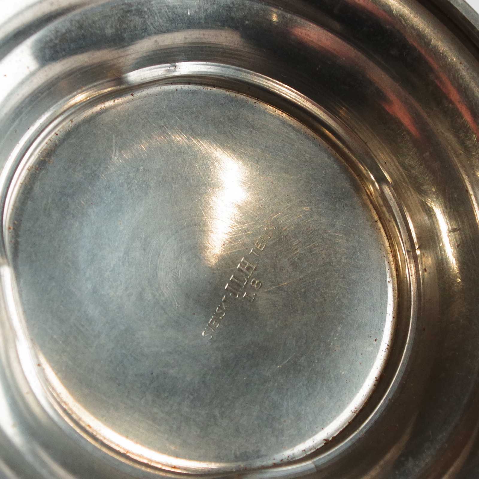 Bilder SKÅL tenn, art deco. H:14,5cm D:27cm. (bucklor)