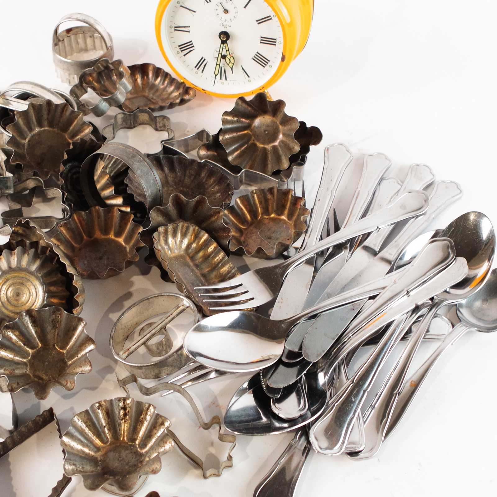 Bilder Parti PEPPARKAKSFORMAR äldre, VÄCKARKLOCKA & BESTICK.