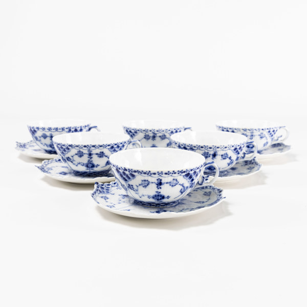 Teservis, 12 delar, "Musselmalet", andrasortering, Royal Copenhagen, Danmark