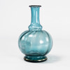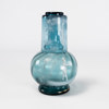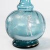 Äldre karaff och glas, blå glasmassa med emajmålning, 18/1900-tal, karaffens höjd 20 cm