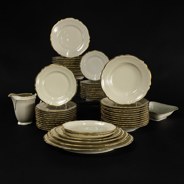 Matservis, 56 delar, porslin med guldkant, Hackefors
