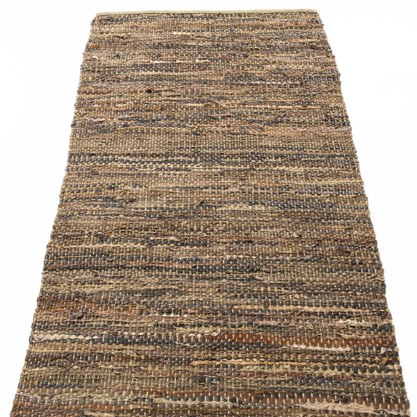 Trasmatta, brunt/grått läder, mått ca 212x71 cm