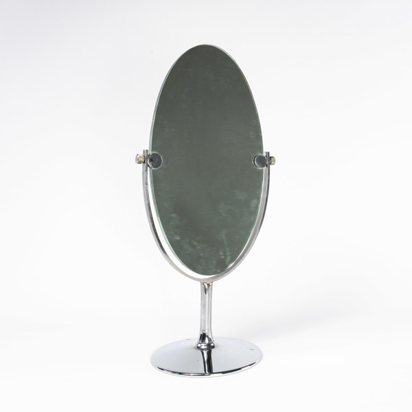 Bordsspegel, oval, kromat stativ, ca 1900-talets mitt, höjd 71 cm